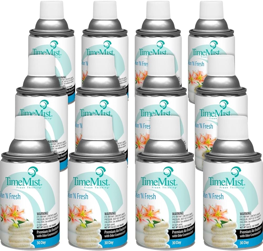 Premium-quality air freshener contains uniquely formulated, long-lasting fragrances and effective odor counteractants that neutralize stubborn odors swiftly and provide lasting aromatherapy. Use Clean and Fresh scented refill in TimeMist full-sized, metered fragrance dispensers. Air freshener is formulated to counteract odors and leave behind a pleasant aroma. Air freshener contains a low VOC formula. Sprayed with a dispenser, the refill is effective for up to 6,000 cubic feet and lasts 30 days.