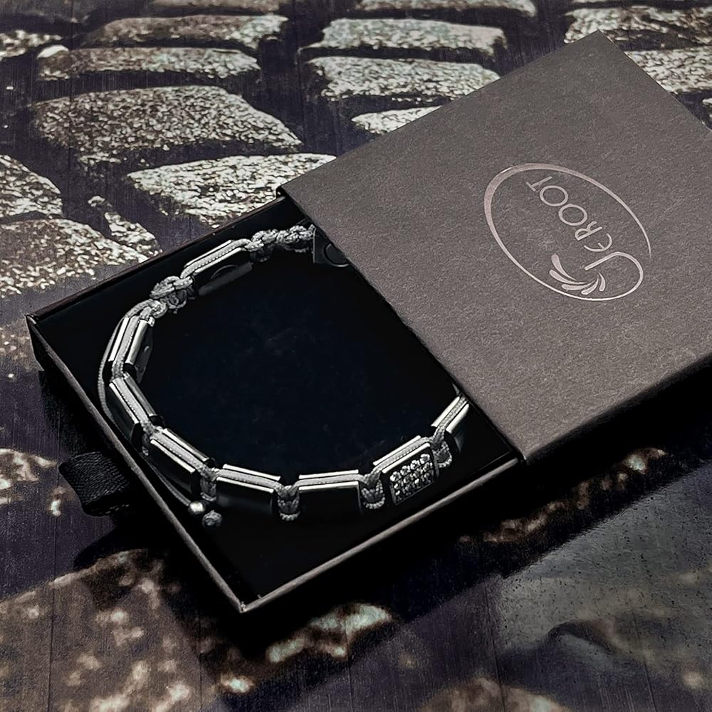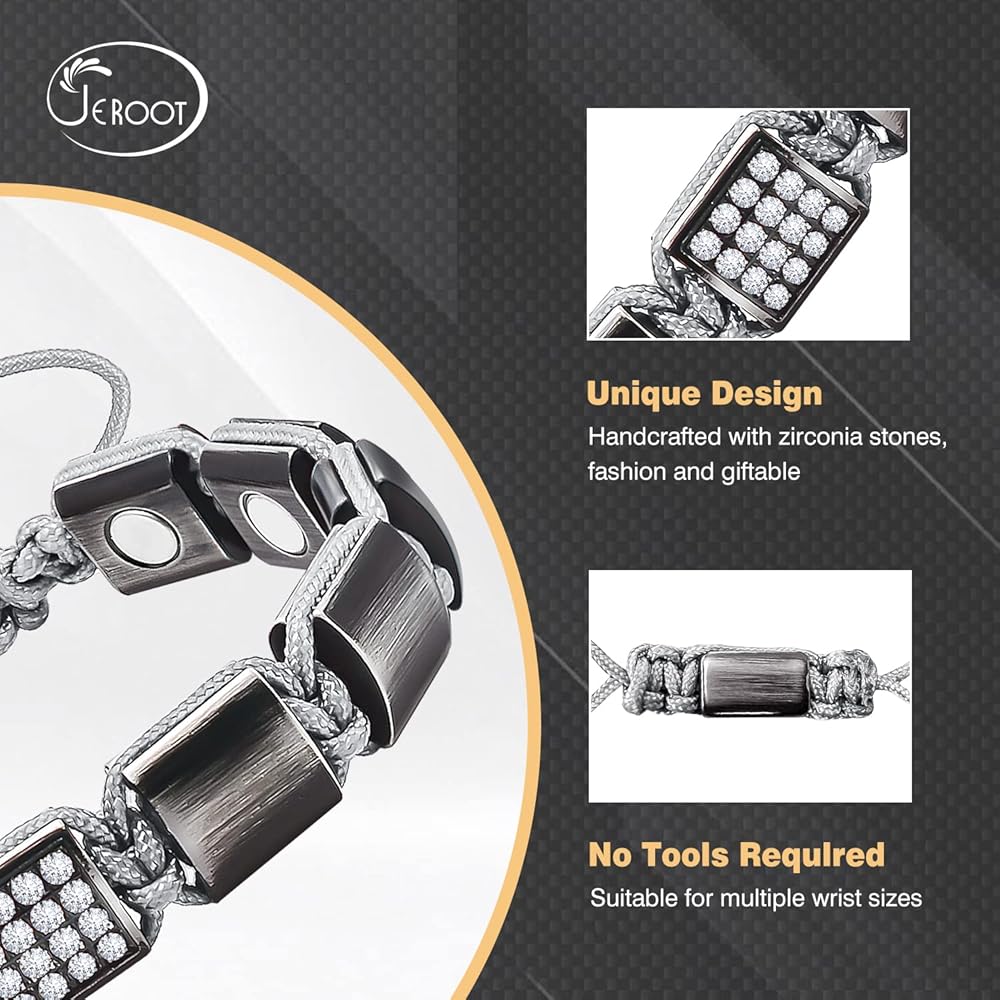 ADJUSTABLE SIZE MAGNETIC BRACELET ----You can use the rope with two beads to adjust the size (18CM-25CM). This buckle allows you to open and close it without any problems, suitable for most men's wrists. This bracelet for men is suitable for both men and women. Not irritating to the skin. It is firmer and harder and attractive to both men and women.