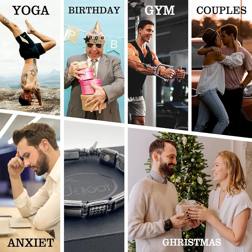 POSITIVE EFFECT:---The magnet of the men's bracelet aligns the energy lines inside the body. A Incomplete energy line can cause diseases, injuries, damage to health process etc. This magnetic bracelet is good for Improving blood circulation, reducing inflammation, alleviating pain and arthritis, promoting relaxation, improving sleep quality, balancing body ions, and eliminating excess positive ions and static electricity.