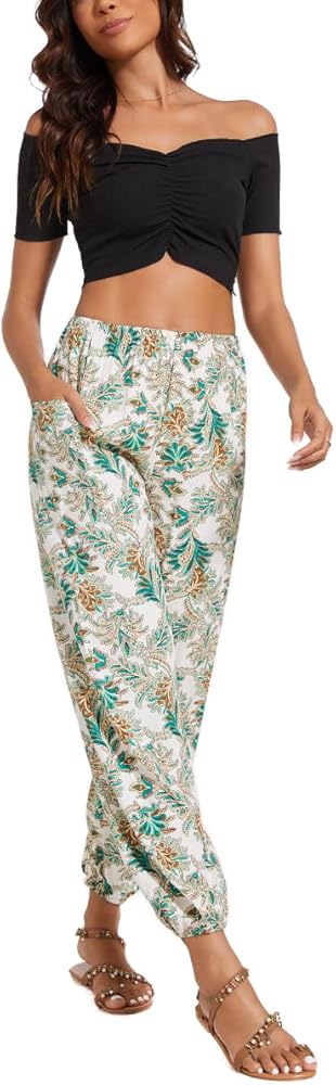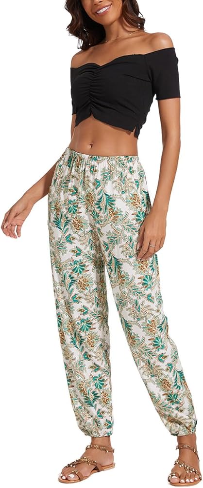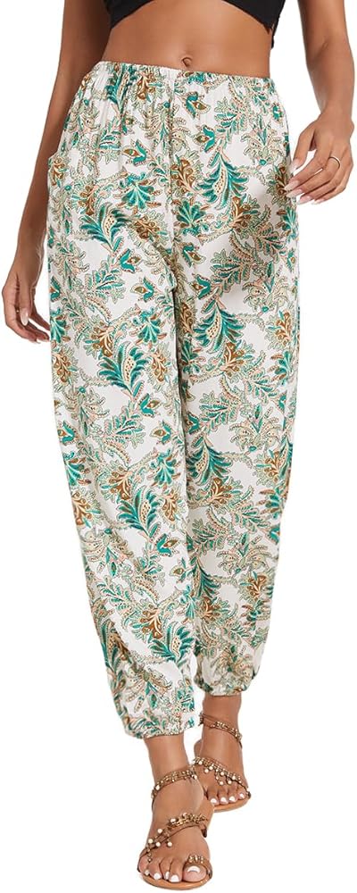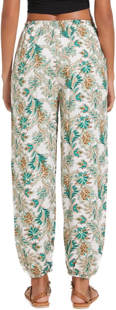 • Features — Harem pants boho palazzo hippie floral yoga trousers, with a combination elastic in waist and ankle. One large side pocket, loose style fit for many shapes. They are engineered to provide all-day comfort, whether you're lounging at home or running errands.