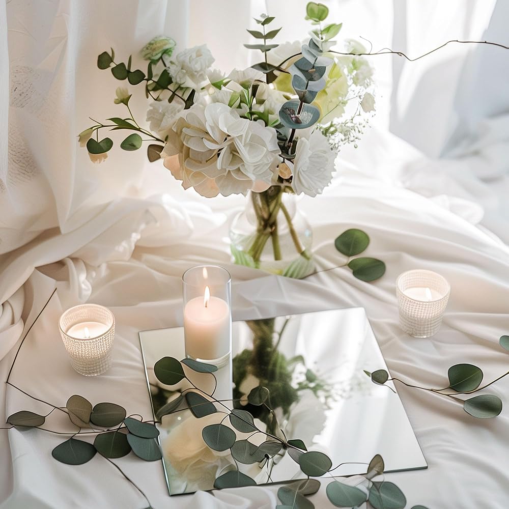 • Elegant Event Decor: Set of 12 square mirror plates measuring 10 inches in diameter and 1.7mm thick, these mirror plates are perfect for displaying candles, flowers, or perfume at weddings, table centerpieces, and Christmas party decor.