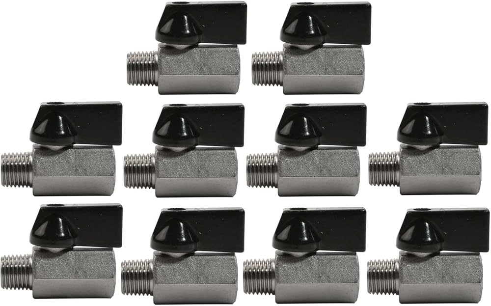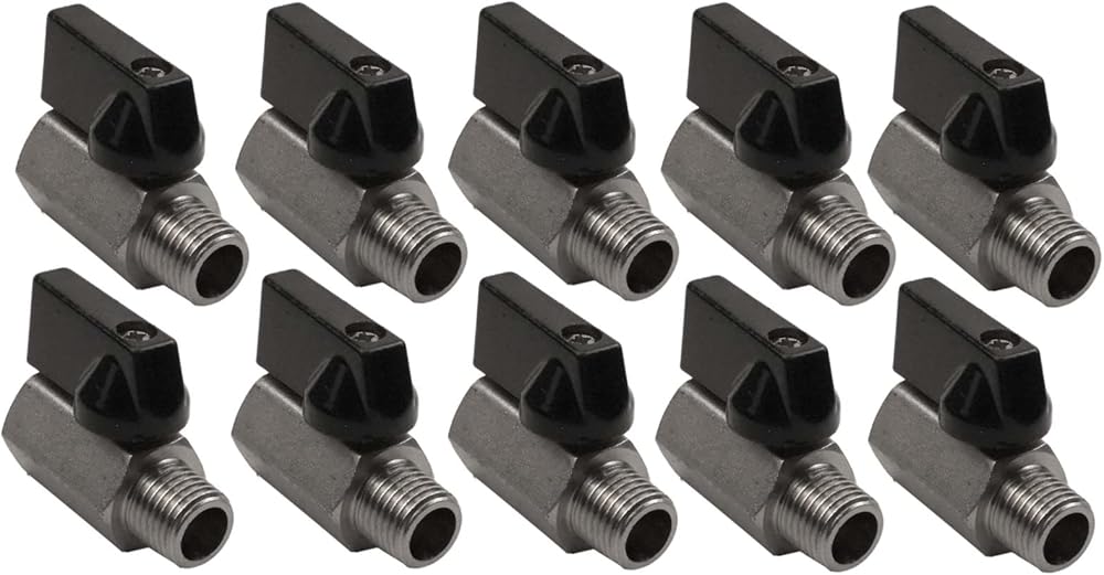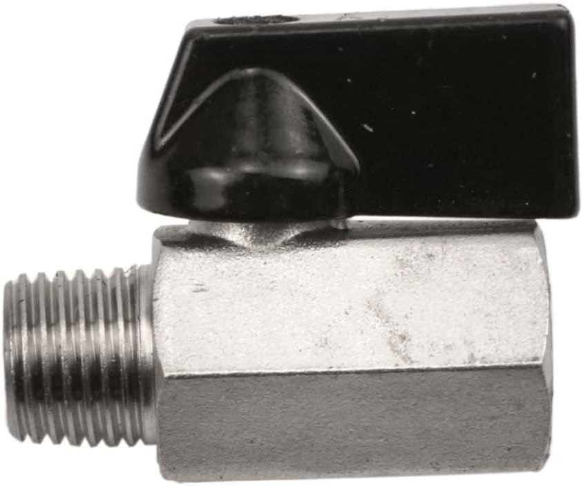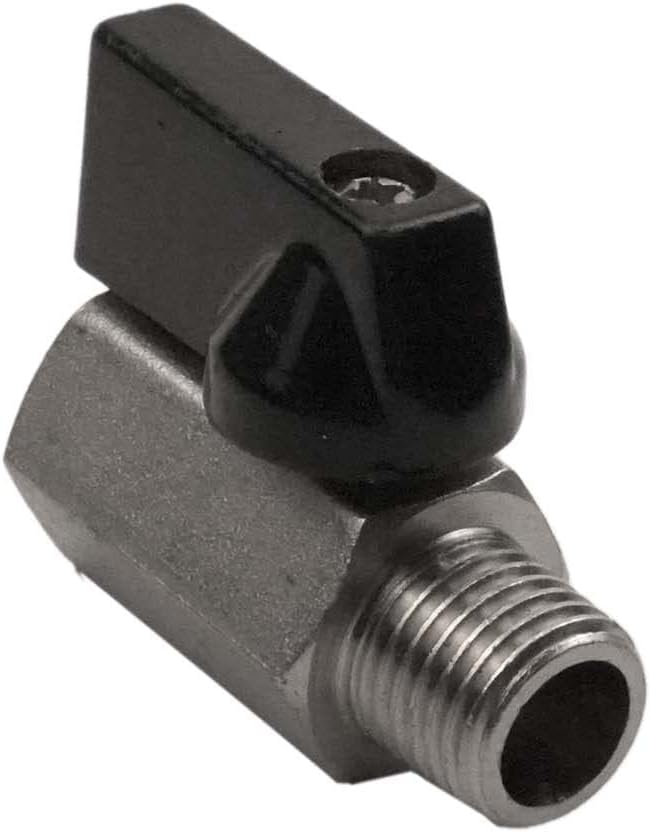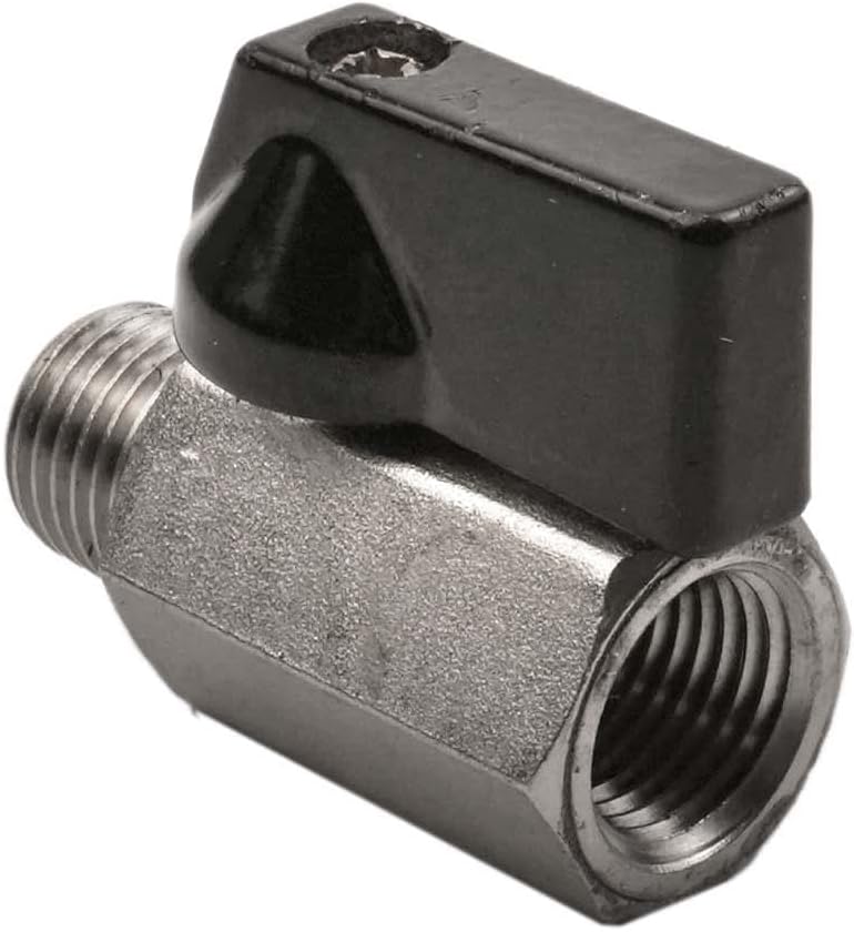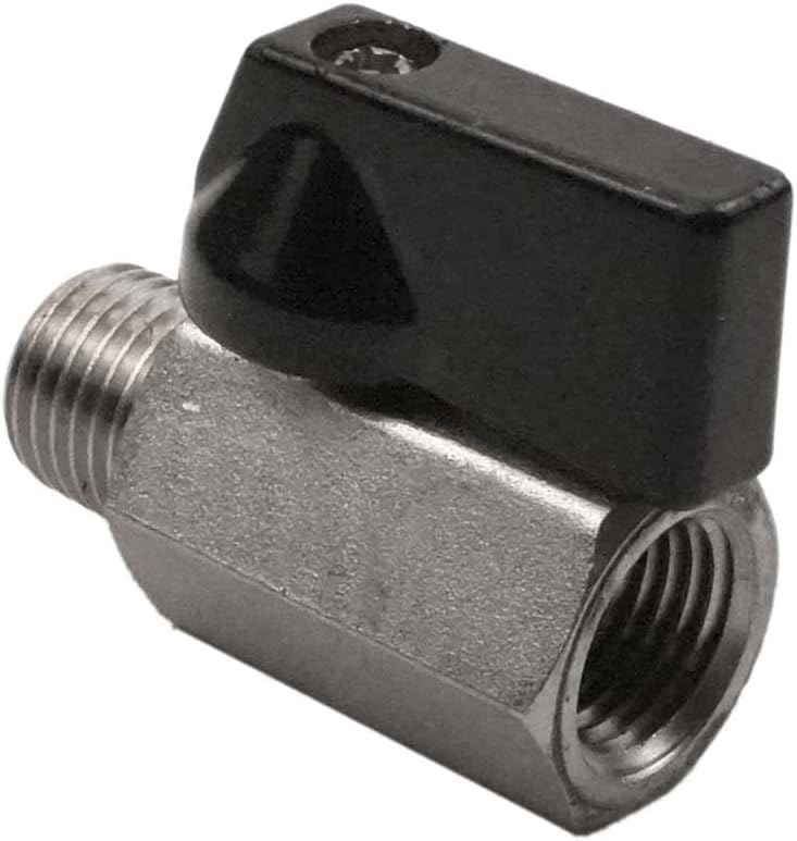 Fitment: This is a solid brass valve that is nickel plated for corrosion resistance. This valve comes equipped with 1/4" male NPT ends on one side and 1/4" female NPT threads on the other. This valve has a plastic handle for opening and closing. This is a versatile valve and can be used inline, as a drain, line shut off, and in countless other applications! This valve measures 1-3/4" long making it perfect for compact spaces.
