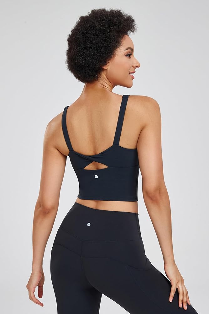 Sexy twist back design to show graceful figure, the stretch straps provide additional support and prevent slippage, so you can confidently tackle any fitness routine.
