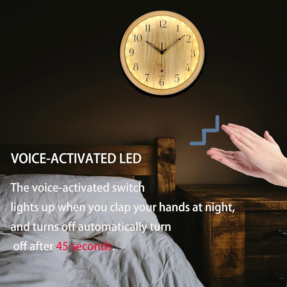 【Night Light Wall Clock】12 Inch large display light up wall clock with light control and voice control luminous function, light are surrounding the clock face, which makes it easy to read in the day or at night.