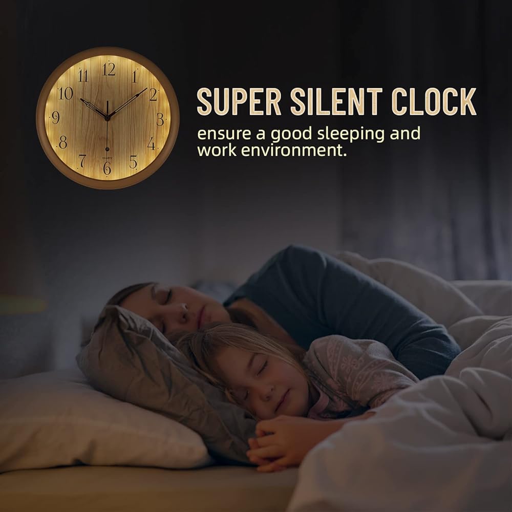 【Slient Sweep Movement】The lighted wall clock premium quality of the precise quartz movement guarantee accurate time, also the silent sweep ensures a good study and work environment.Non ticking super silent,you no longer have to worry about its annoying clicking noises at night.