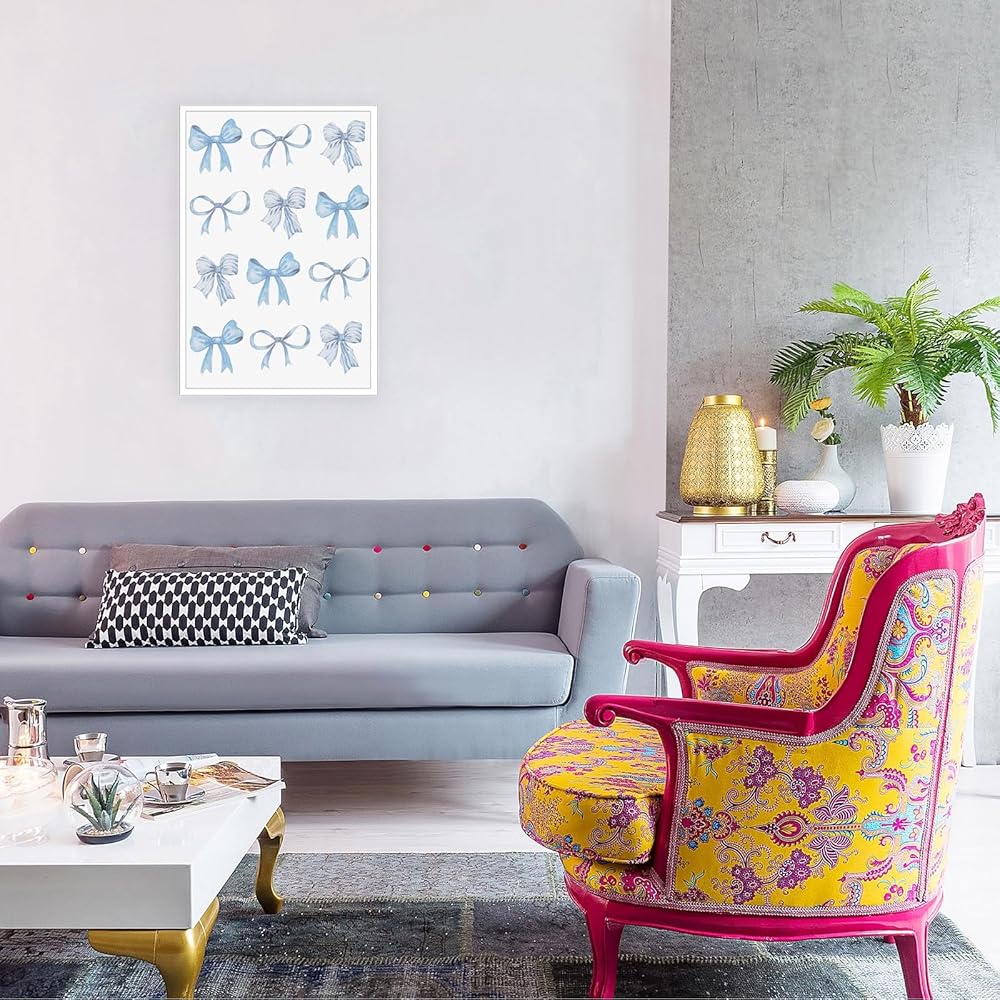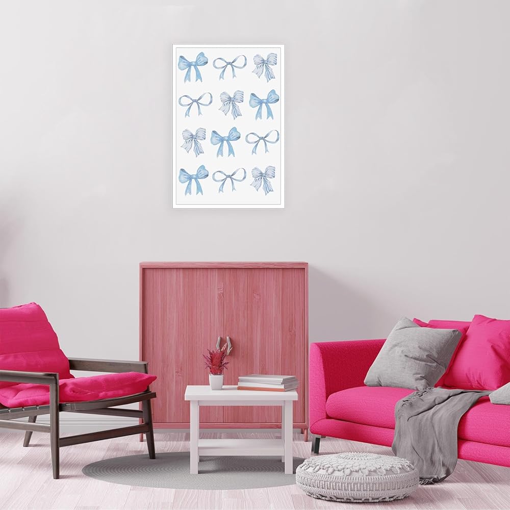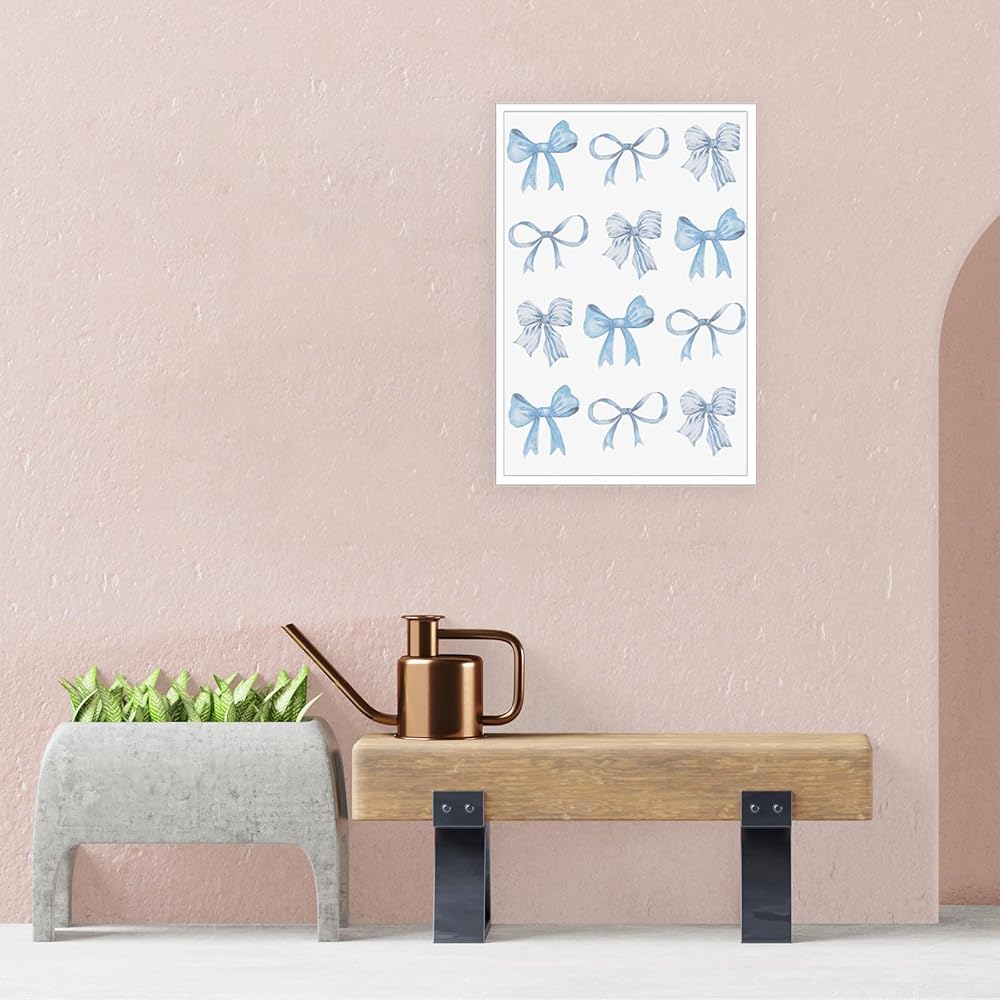 Trendy Blue Bow Canvas Wall Art Watercolor Light Blue Bow Prints Painting Balletcore Girl Posters Funky Coquette Preppy Aesthetic Wall Decor For Bedroom Living Room Poster 12x16in Unframed