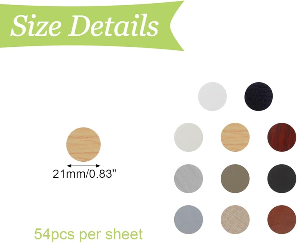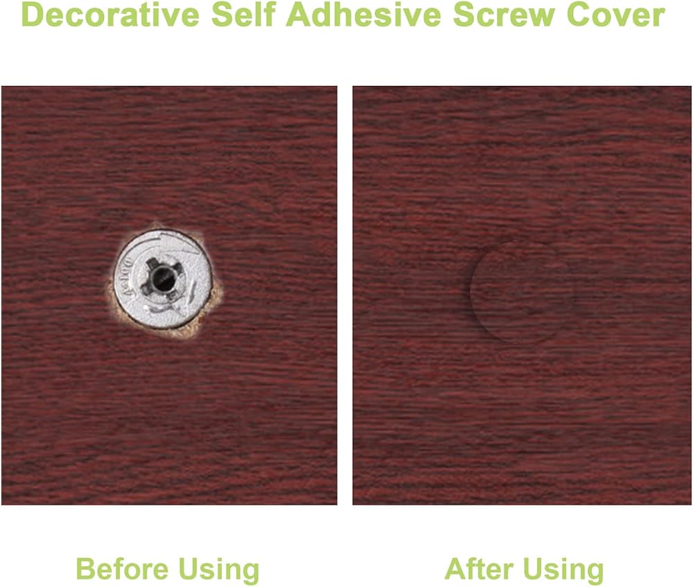 【Wide Application】Widely use on covering holes for wardrobe, cabinet, bookcase, shelves, desk etc. Due to the difference in the material and workmanship of each piece of furniture, our screw stickers may have a slight color difference with the color of the furniture.