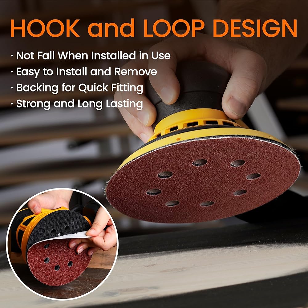 Universal compatibility: Our 5 inch (125mm) sanding discs fit universal orbital sanders, such as BLACK+DECKER, DEWALT, Bosch, Makita, PORTER-CABLE, etc.