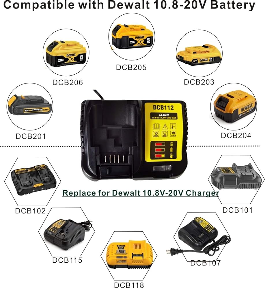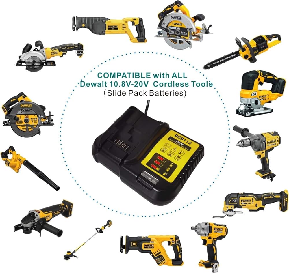 1.Wide compatible:100% compatible with Dewalt 12V 20V Li-ion battery DCB140 DCB180 DCB127 DCB107 DCB120,DCB207...