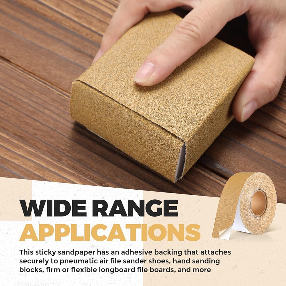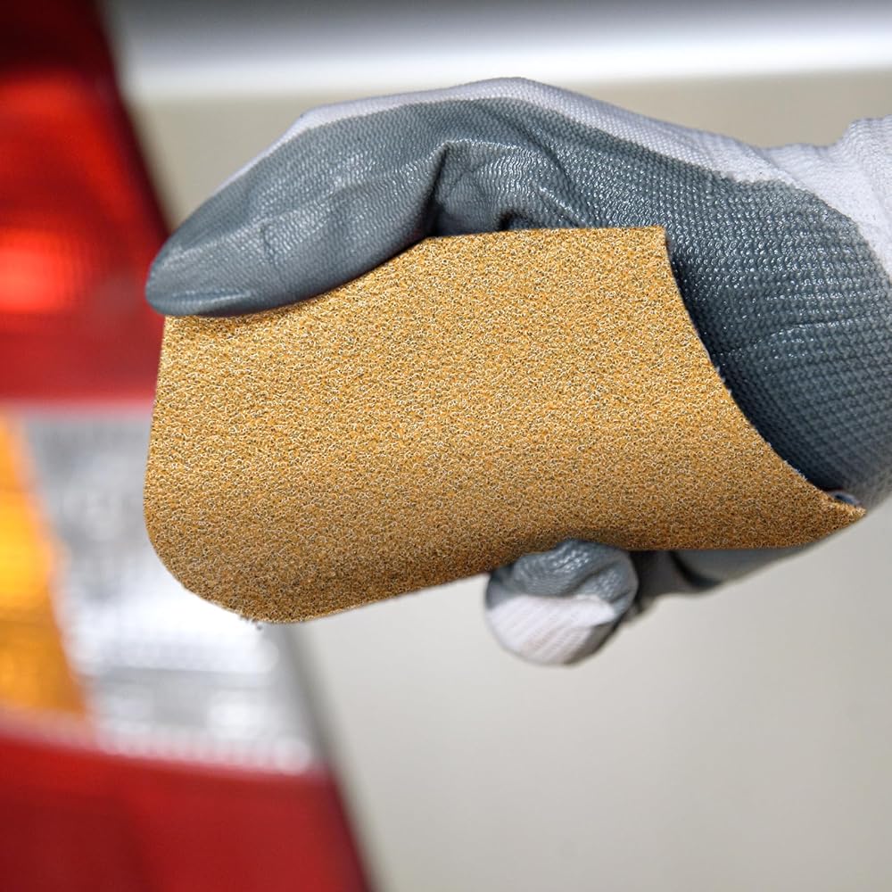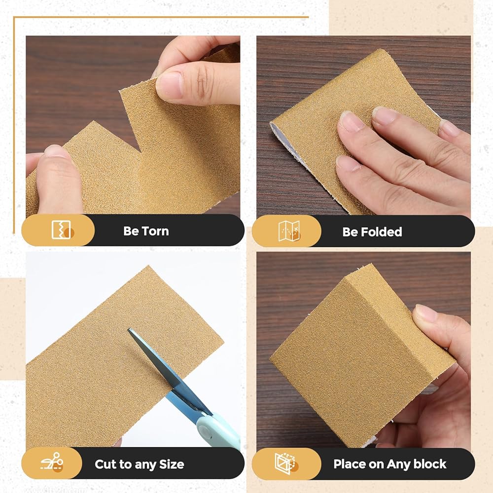 Shining in its golden yellow color, this sandpaper does not only add a touch of elegance to your work station but also serves as an efficient and highly effective tool.