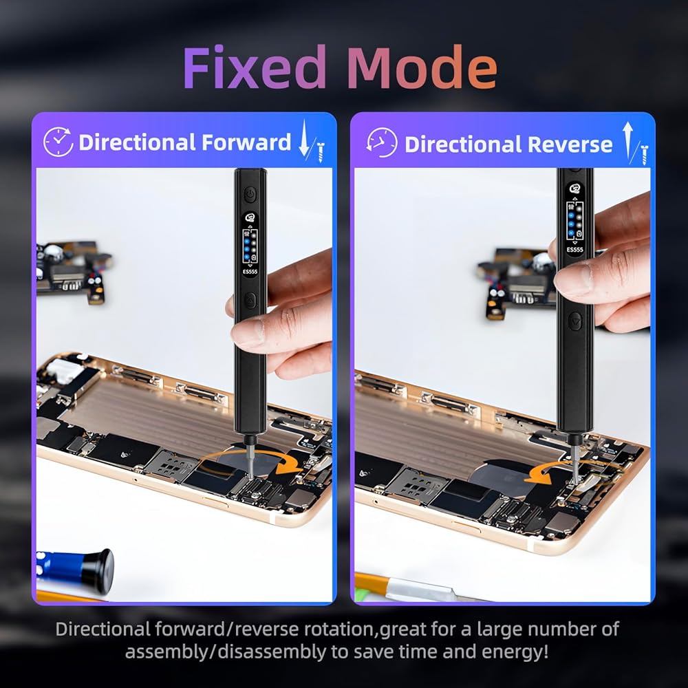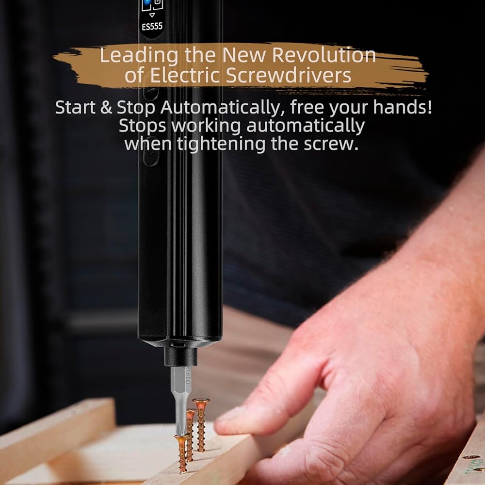 Innovative Power Screwdriver - The auto mode is an initiate of the screwdriver industry. You don't need to press the button all the time, free your hands. ES555 can loosen or tighten the screws automatically. You also can change to fixed mode to operate it. Just press the buttons to make the screwdriver rotate forward or reverse.