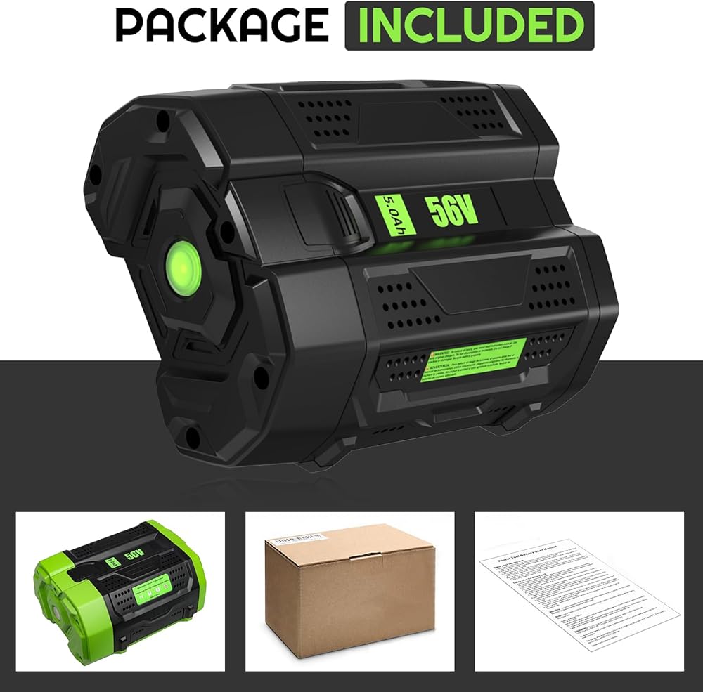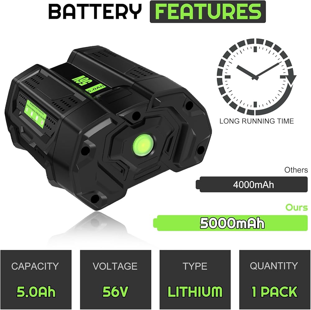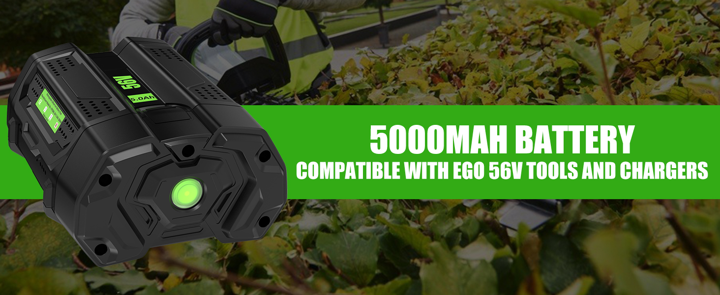 【Specification for EGO Battery 】100% Brand New | Voltage:56 Volt | Capacity: 5000 mAh | Battery Type: Lithium-ion Replacement for EGO 56 Volt Battery, Comoatible with EGO 56 Volt Charger.