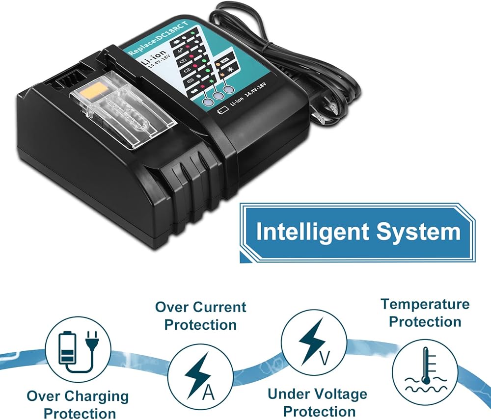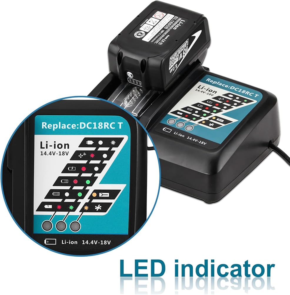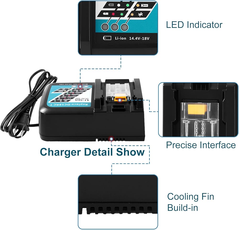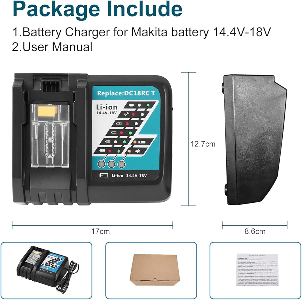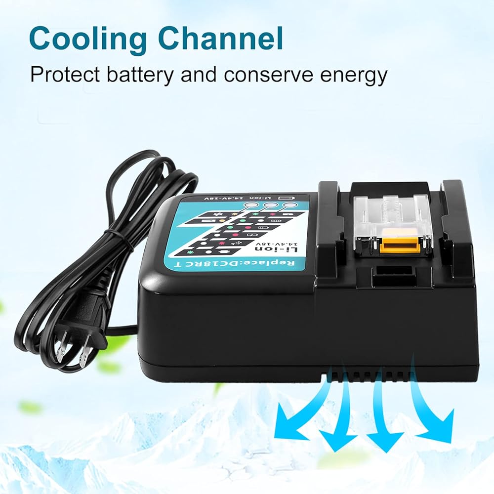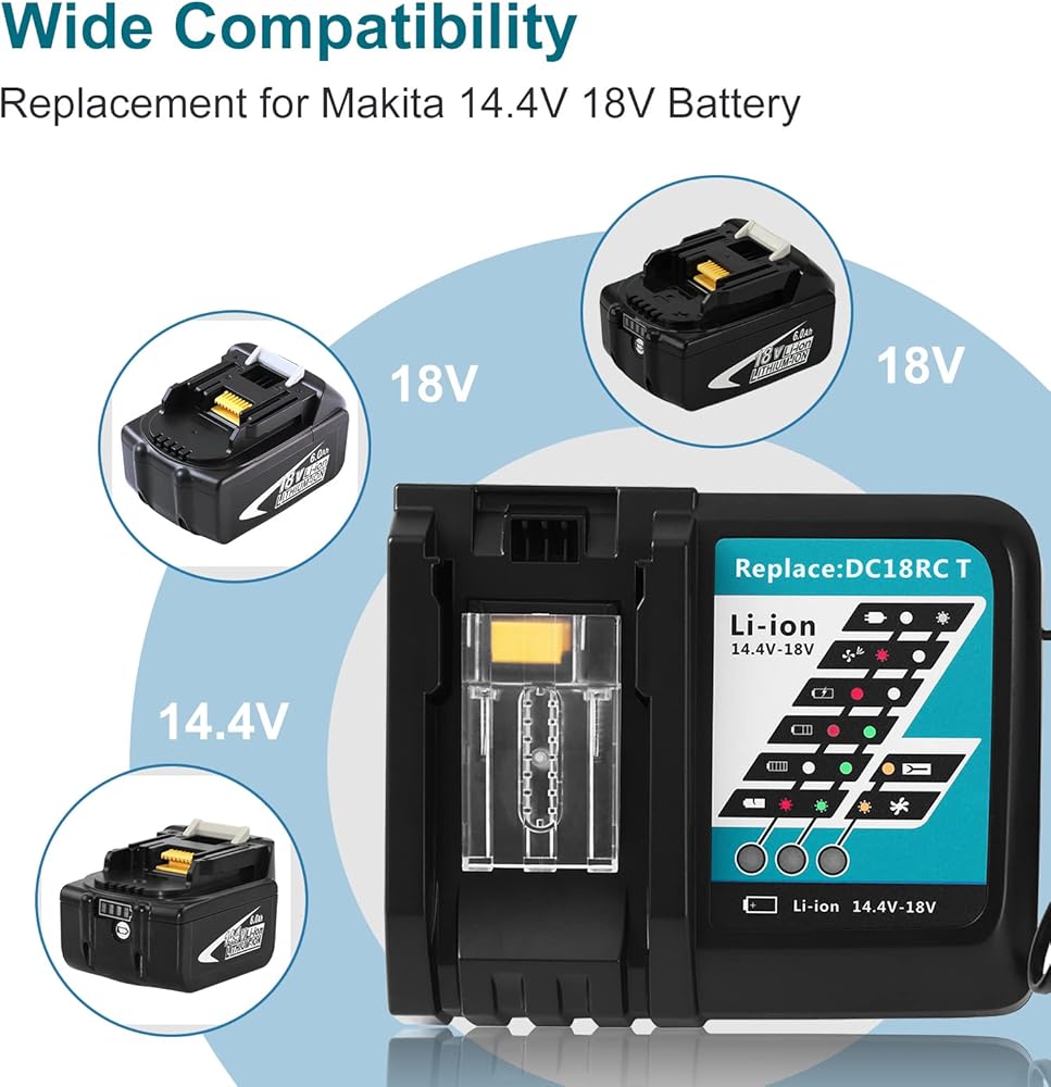 Replacement Battery Charger Compatible with 18 Volt Charger for Makita 18V Battery Charger Compatible with Makita 14.4V-18V LXT Lithium-Ion BL1860 BL1850 BL1840 BL1830 BL1815 Rapid Charger DC18RC