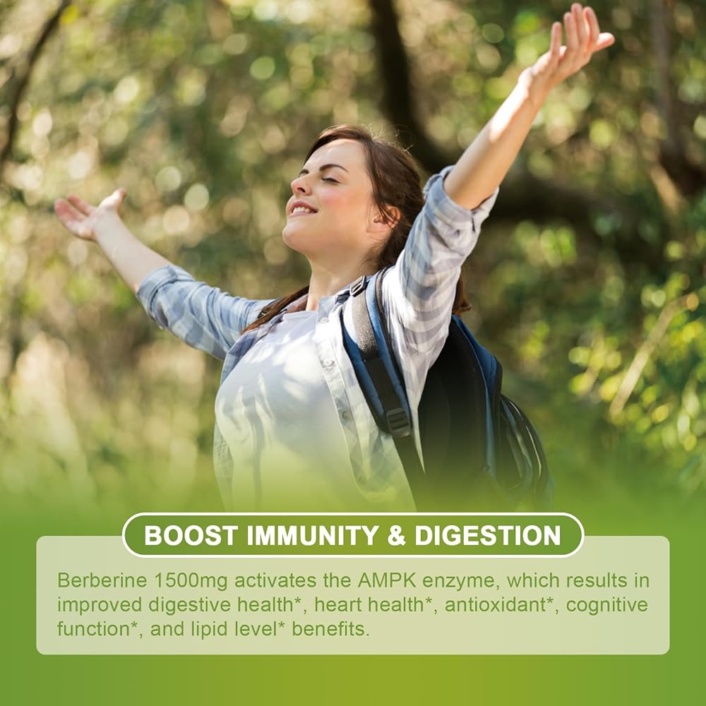 BOOST IMMUNITY & DIGESTION - Berberine 1500mg activates the AMPK enzyme, which results in improved digestive health*, heart health*, antioxidant*, cognitive function*, and lipid level* benefits. Berberine also slows the breakdown of carbohydrates in the intestines so you always feel energized. Perfect for taking your overall health to new heights!