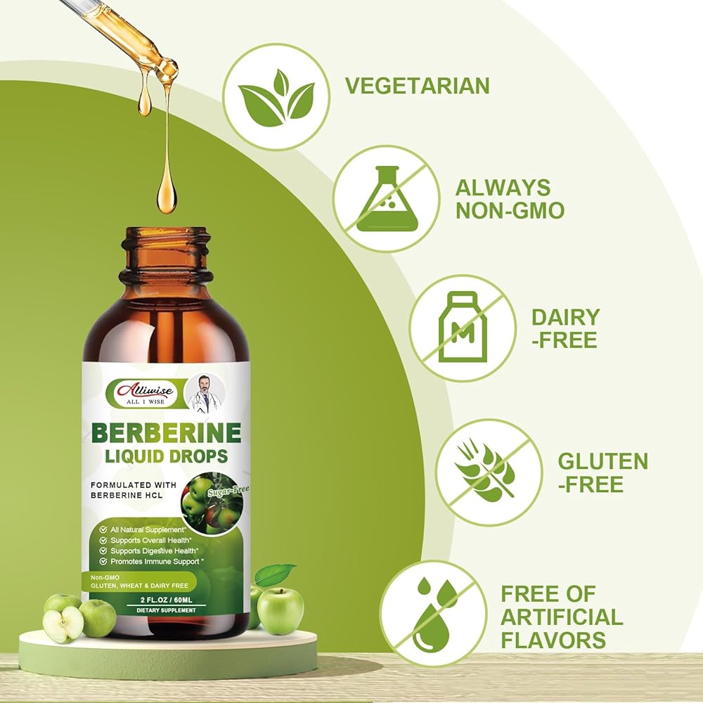 VEGAN & NATURAL - If you need a high-quality Berberine Supplement, you can count on our premium vegan berberine drops. All natural, safe and sugar free apple flavor. This product is all natural and contains no artificial ingredients, binders, color additives, chemicals, fillers or preservatives.