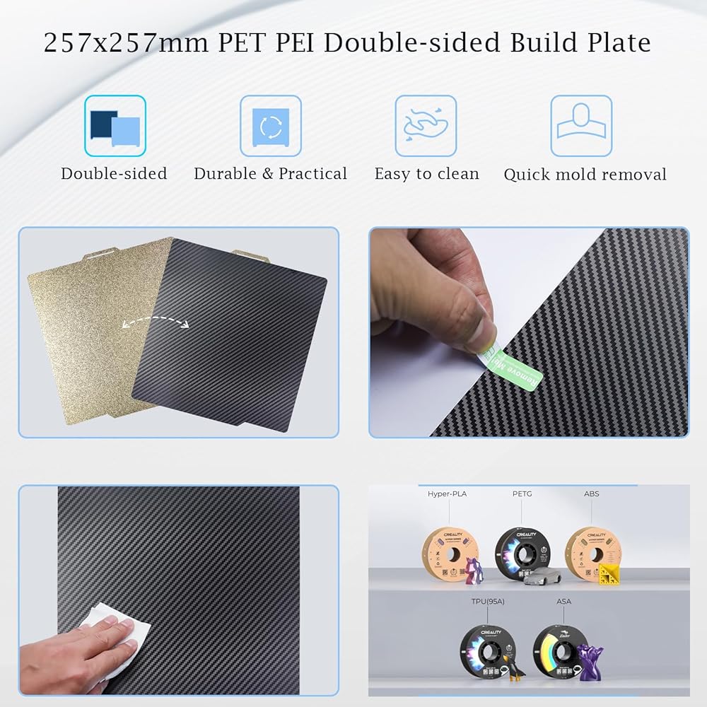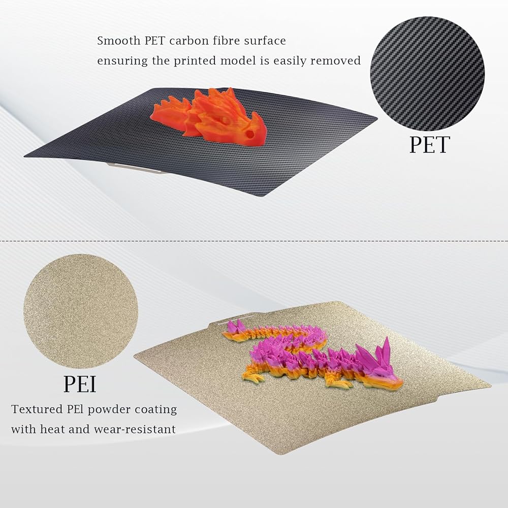Wide Compatibility: After our extensive testing, we recommend PEY to print PLA/TPU/PETG. (Temperature recommendation: 50°C-70°C, ≤90°C). Easy to clean, just wipe it off with a wet tissue or alcohol before printing.