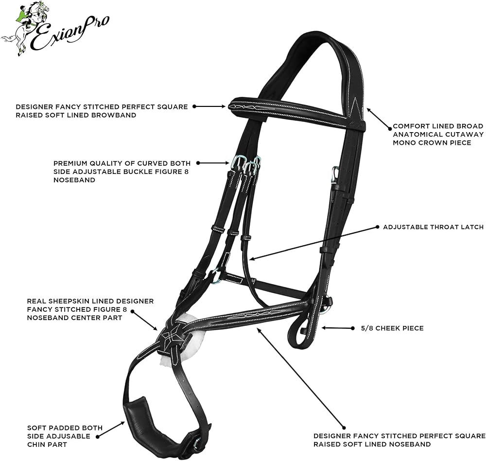 The specially designed noseband straps makes it better adjustable with crown piece and separate neck strap with double buckles make this bridle better adjustable.