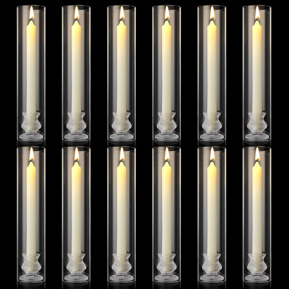 💗 The product includes: 6pcs thick glass base+6pcs windproof hurricane glass hurricane glass made of sturdy glass, which will not burst when the candle burns and can be reused multiple times. The chimney style candle holder is open on both sides and can be used separately to cover other conical or cylindrical candles.
