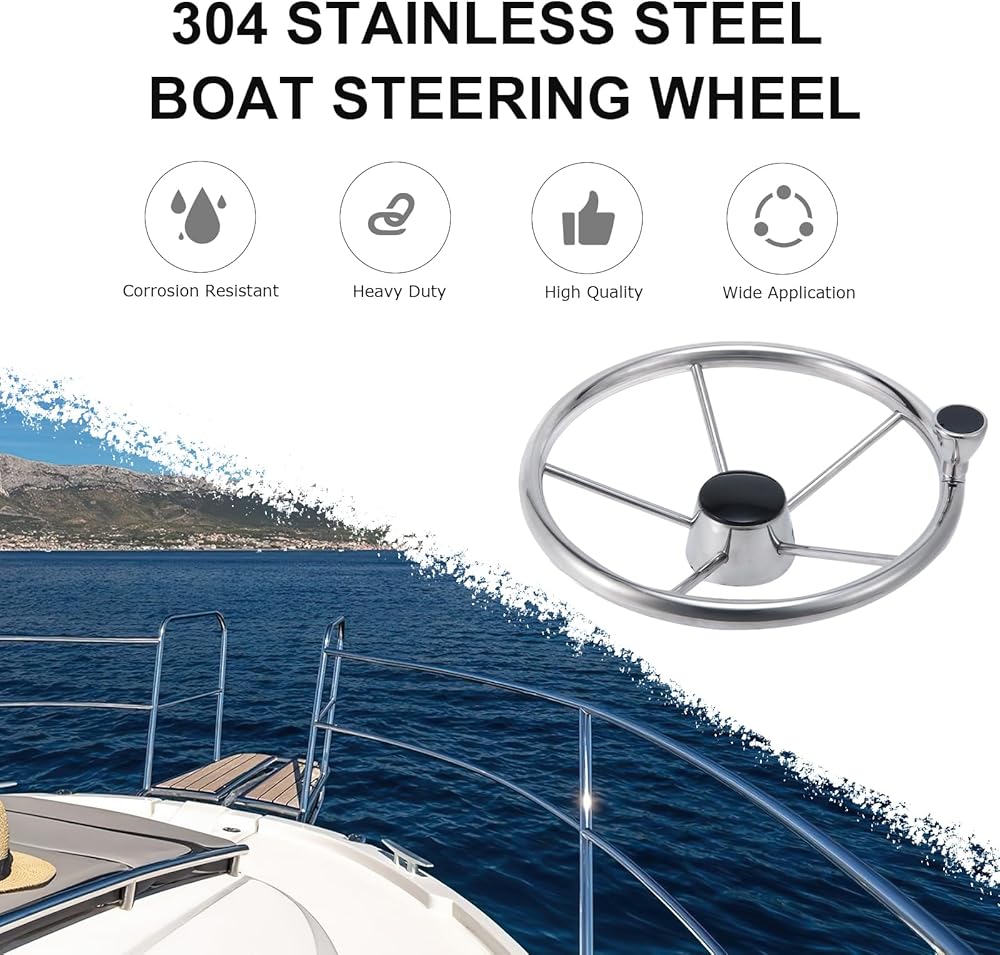 304 Stainless Steel Construction: Constructed from 304 stainless steel, this marine steering wheel is highly durable and corrosion-resistant, ensuring long-lasting performance even in harsh marine environments.