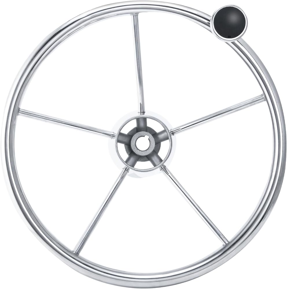 Five-Spoke Design: The five-spoke design enhances both the aesthetic appeal and the structural integrity of the steering wheel, providing a reliable and stylish addition to any marine vessel.