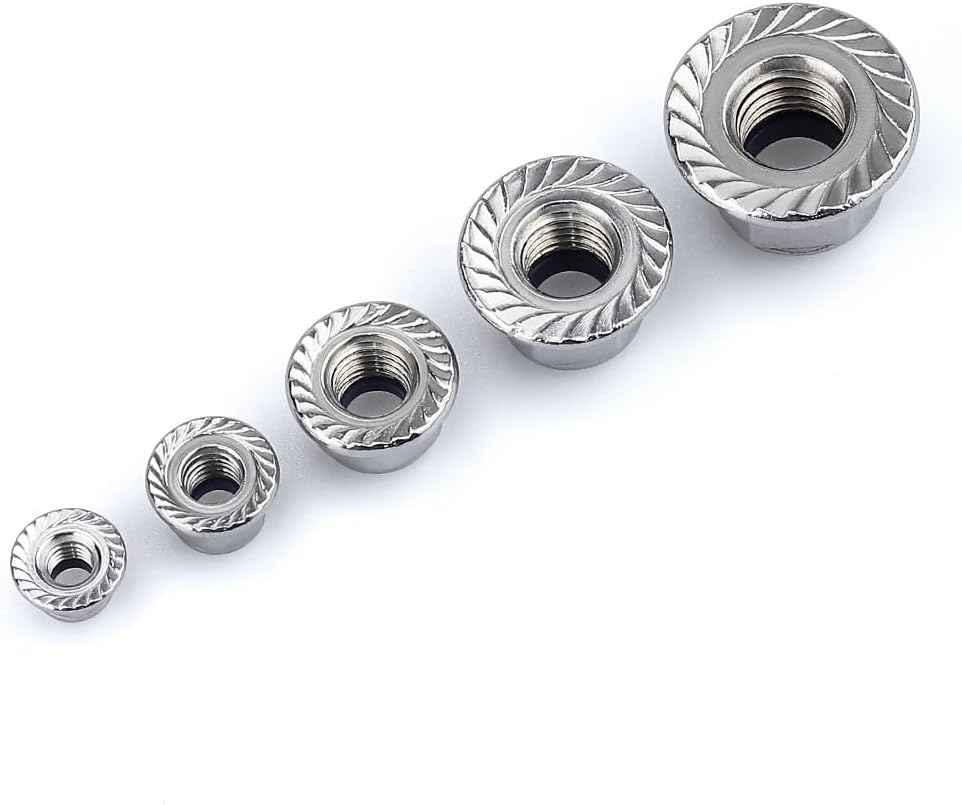 Flange nut is a kind of nut that has one side shaped with a wide and flat surface and the surface functions like a washer to distribute the stress. Flange nuts are commonly used to attach wood and metal parts.The serration could give the nut better holding power.