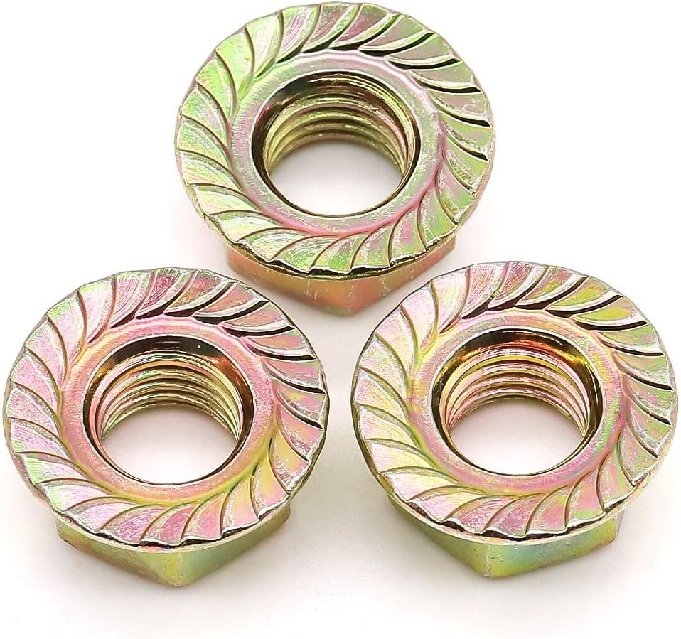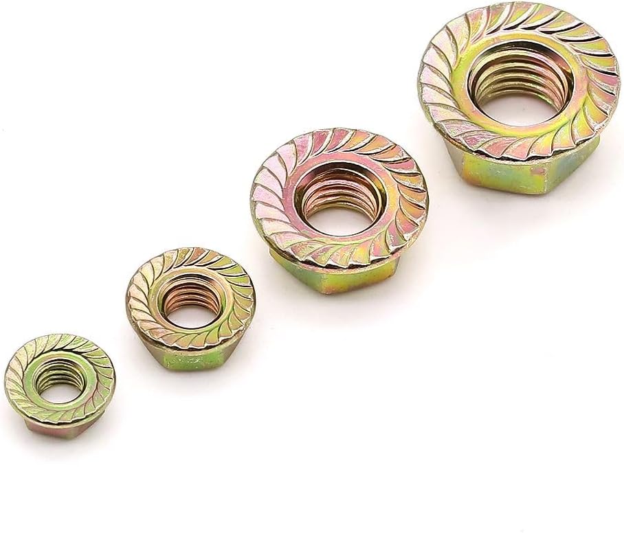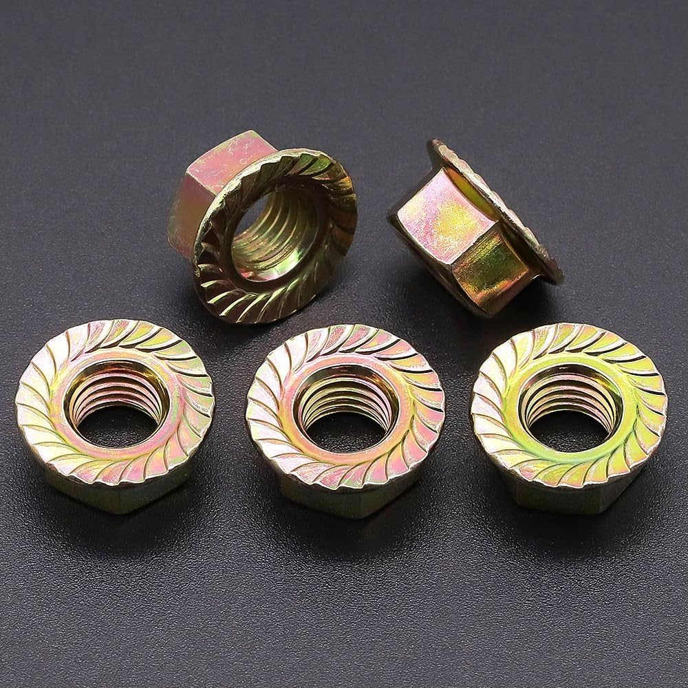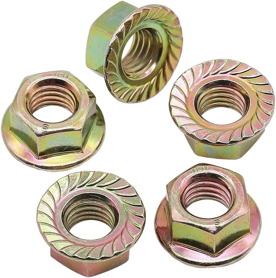 Material: High Quality Grade 8 Carbon Steel, medium-strength steel serrated flange Locknuts, strong enough for use in most machinery and equipment.