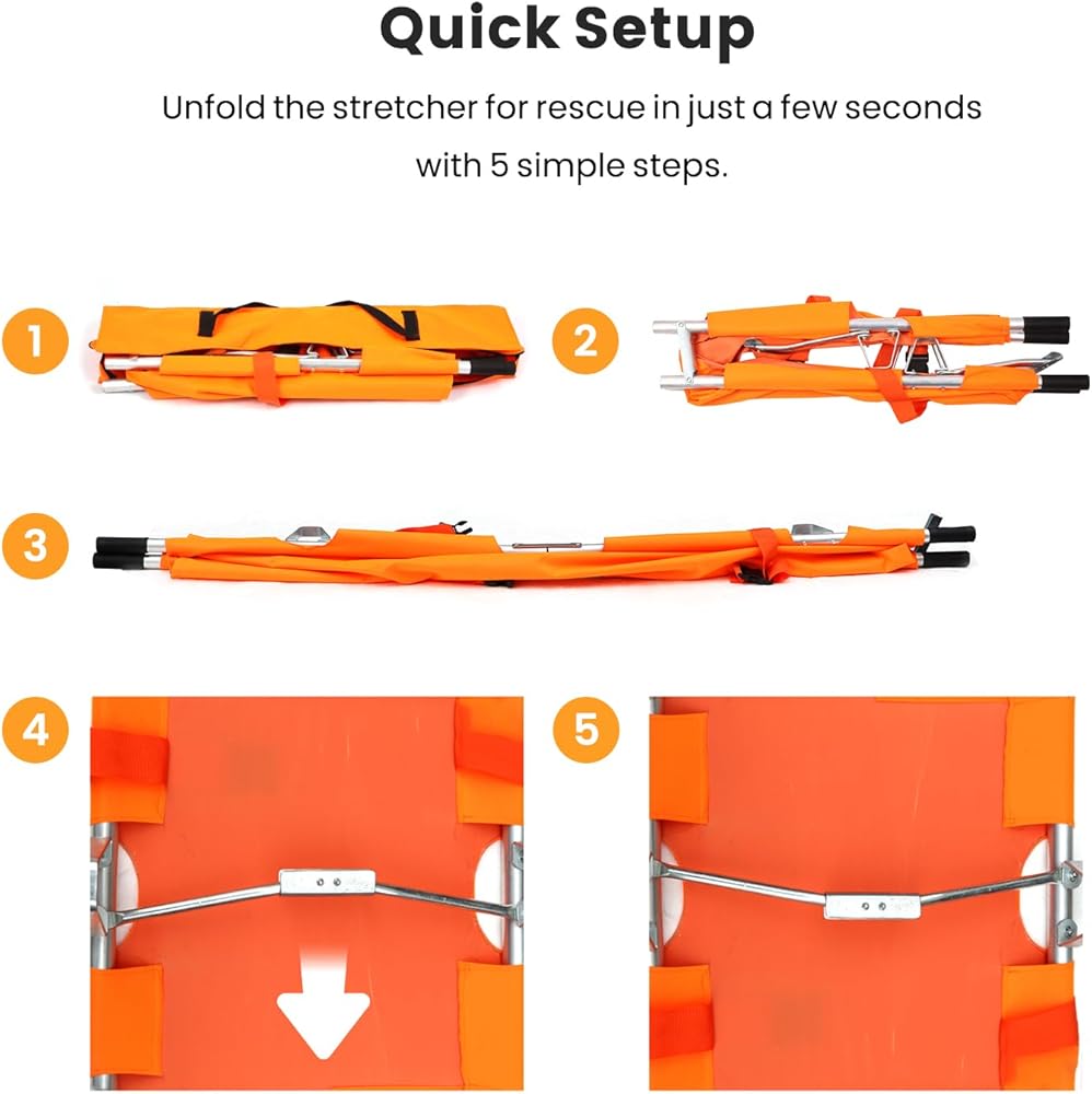 【Premium Construction】This medical emergency stretcher is made from industrial-strength aluminum alloy and 600D PVC Oxford cloth, this stretcher is sturdy, durable, and resistant to stains, water, and heat. Lightweight yet supportive, it can hold up to 350 pounds.