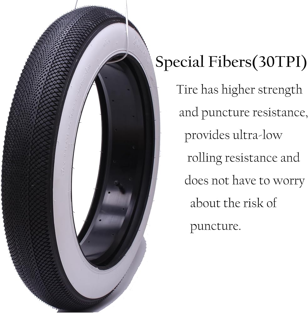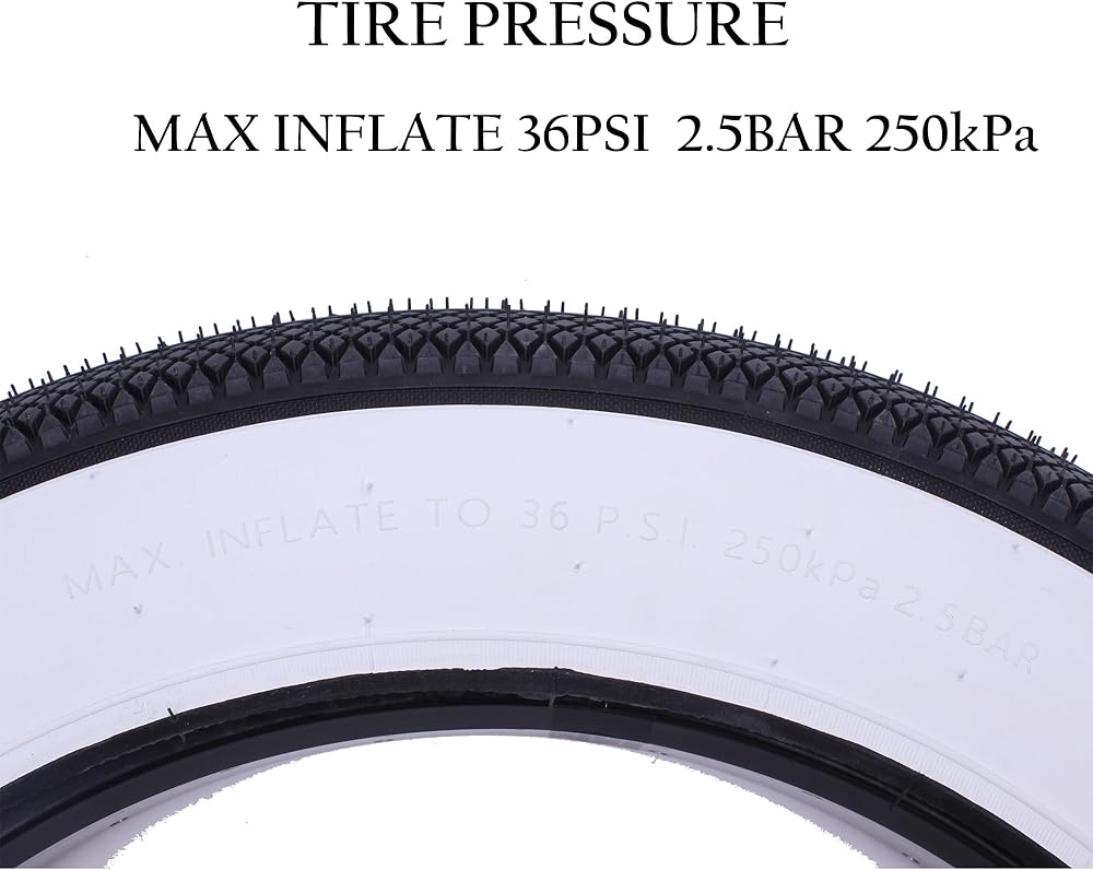 E-bike Fat tire size: 20×4.0 inch.Max Inflate to 35 P.S.I.