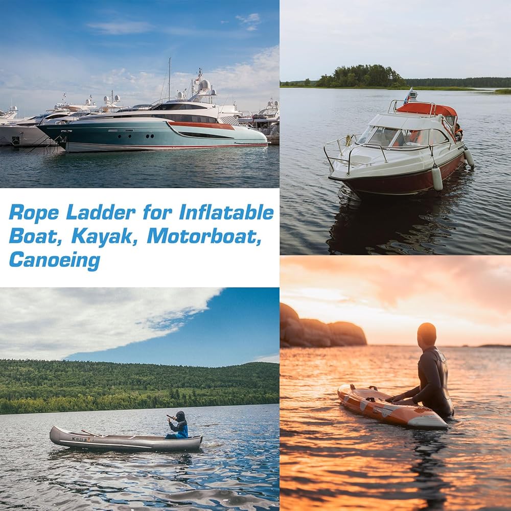 Explore Water Confidently: Premium Boat Rope Ladder, Embark on worry-free water adventures with our UV-resistant boat rope ladder—a strong, lightweight essential for inflatable boats, kayaks, and more. Stainless steel hardware ensures durability and safety.