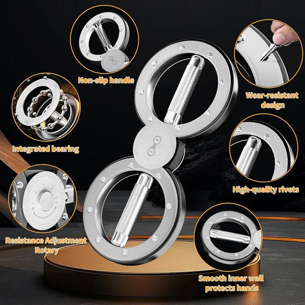 🏆【TYPE 8 DESIGN】: The Spinning Fat Burner utilizes an innovative Type 8 design that targets the connection between muscles, tendons, and ligaments. The sports equipment is covered in smooth stainless steel, ensuring that you won't hurt your hands during your arm exercises. The internal use of one-piece ball bearings provides unrivaled flexibility for 360° rotation, allowing you to enjoy a full workout from your wrists to your forearms to your shoulders.