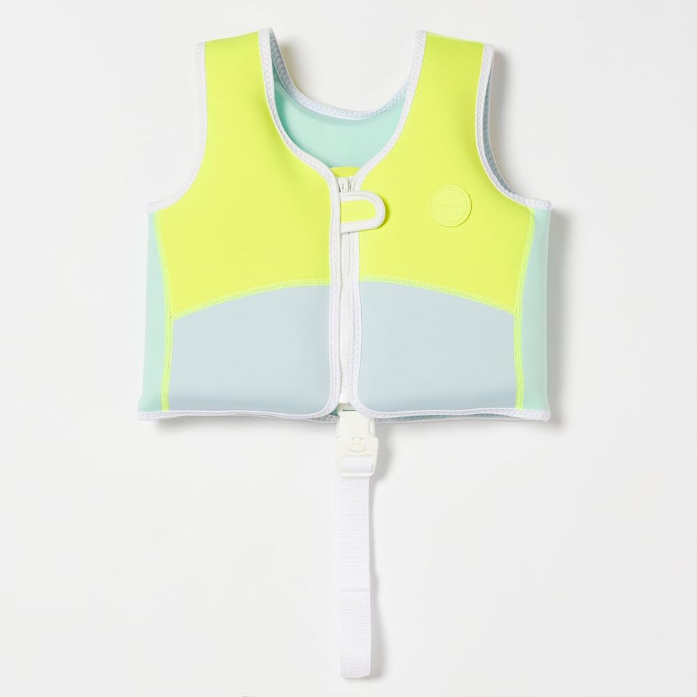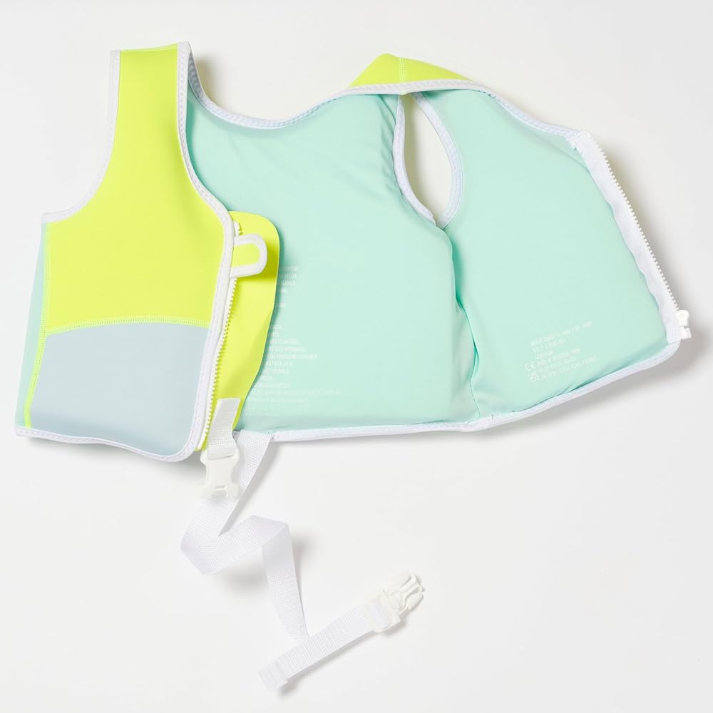 From paddling to pro, boost kids swim confidence. The Into The Wild Swim Vest 1-2 is cute, practical as well as comfortable and will be sure to make a splash wherever you go. Made from durable neoprene for buoyancy and warmth, simply zip the vest up from the front and secure the safety strap between the legs for a snug fit. Little ones will be sure to love the freedom this swim accessory offers them, from swimming to playing and building confidence in the water. Turn heads and ensure this season is one to remember with its trendy maxi stripe print, sharp scaled backbone, and cool khaki and cream colourway. Suitable for children aged 1-2 years old.