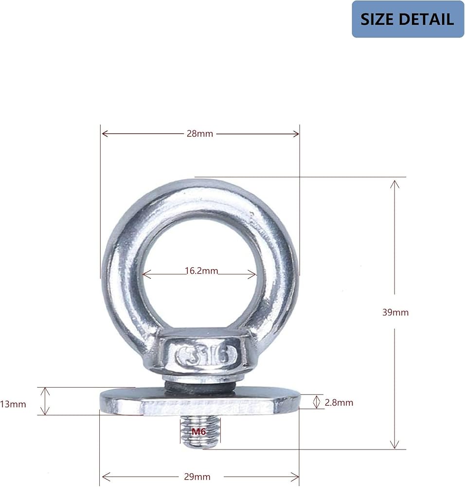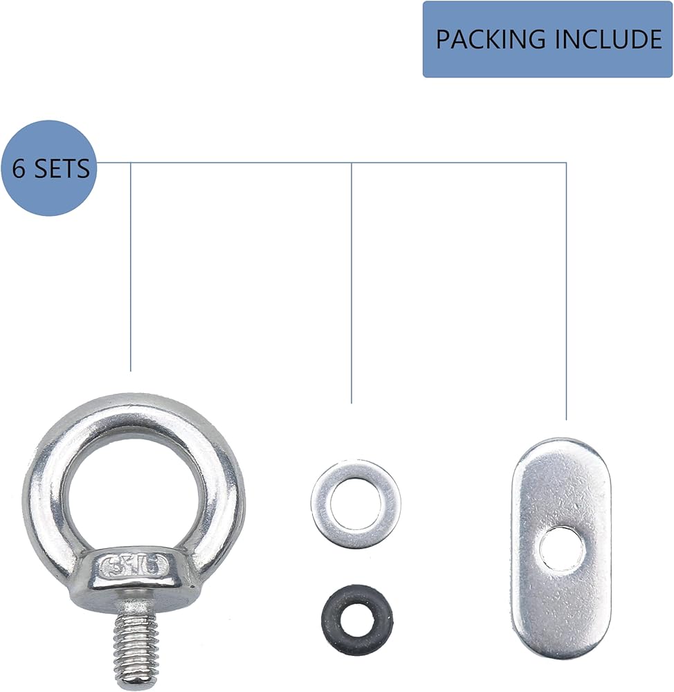 Thorn Track Mount Tie Down Eyelets, M6 Metal Eye Bolts, 316 Stainless Steel, Hold Bungee Cord or Ropes Up to 0.6 Inch ,Pack of 6