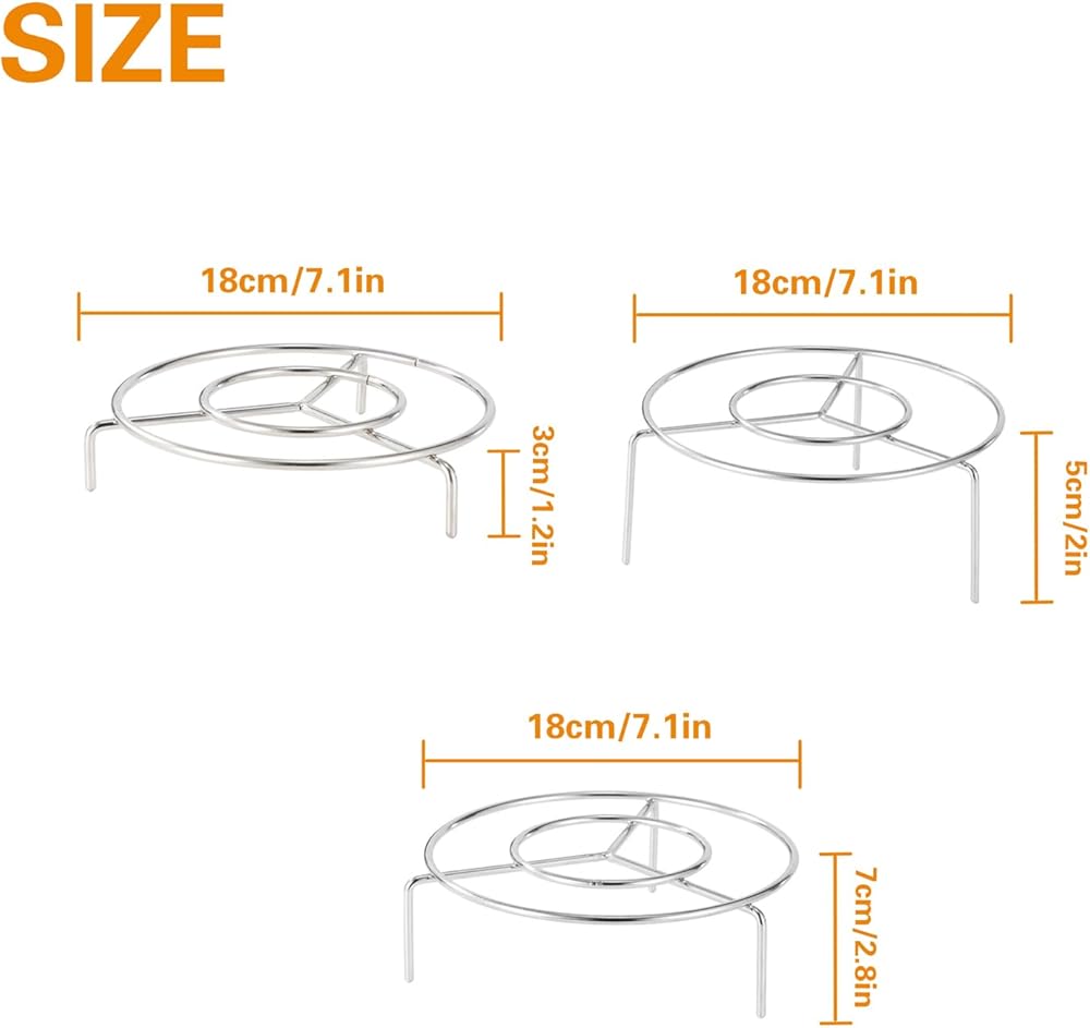 Stackable Convenience: This set includes three risers, each measuring 7 inches in diameter and available in three varying heights (1.2 inch, 2 inch, and 2.8 inch), offering versatility while allowing easy stacking for compact storage in any kitchen or pantry.