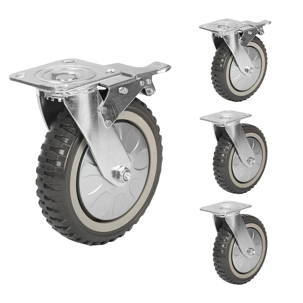 uyoyous 8 Inch Heavy Duty Swivel Caster Wheels Set of 4-2 with Brake, 1760 LBS Load Capacity Polyurethane Casters, All Terrain Locking Casters for Workshop Cart, Garage, Jobsite Equipment