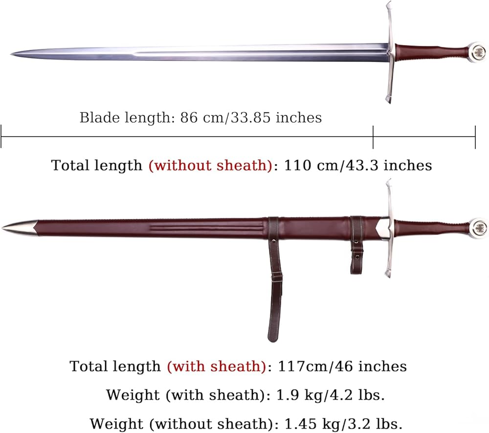 [Description] - King Arthur HAND CRAFTED TWO-HANDED SWORD: This is a fully handcrafted two-handed sword, 49 inches in length, fully cut and sharp, hand forged from high carbon steel.