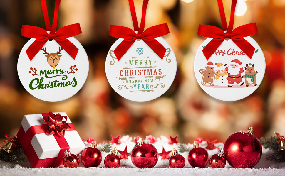 【Wide Applications】As a Christmas tree hanging pendant, it can not only decorate your Xmas tree but also hang on the fireplace, doors, windows, and more, adding a strong festival atmosphere. In addition, ceramic ornament blanks can be printed on office slogans, greetings, brand logo, and other content you want, widely used in, shops, offices, hotels, restaurants, bars, and other places.