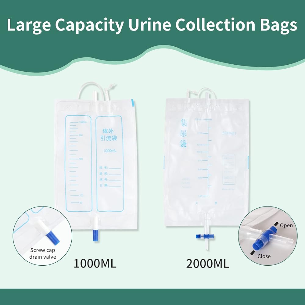 Urine Collection Bag: For people with mobility disorders, urinary frequency, post operations, have difficulty ambulating to bathroom, Etc. Also great for traveling and camping, Urinary incontinence, bedridden, elderly people who get up at night is not convenient.