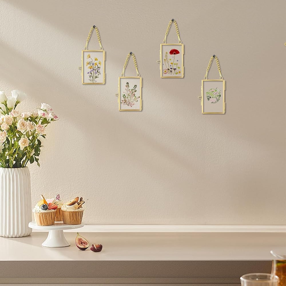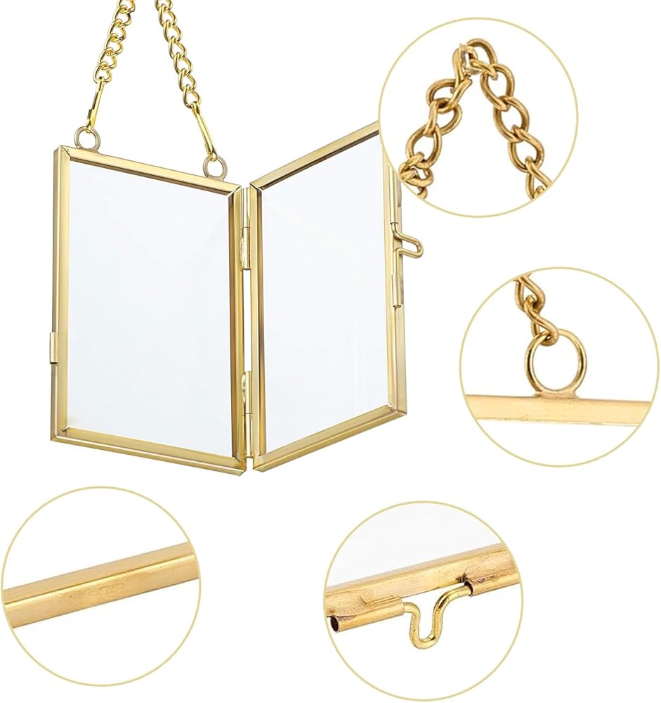 Make an exhibition of yourself. This Picture Frame is made of high quality and durable Brass, High Definition Glass,High quality and durable, with a gold metal Chain, can be hanged on the wall easily.The glass front and back make them great for photographs, or other precious keepsakes like postcards, concert tickets and drawings.Give your favourite pics pride of place with our hanging photo frame.