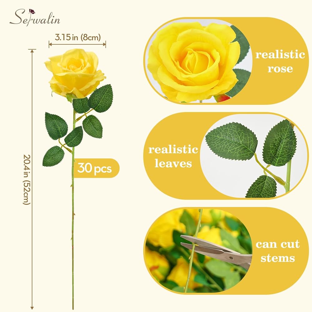 【What You Get】: Package including 30pcs realistic artificial white roses bulk, roses head are in full blooming:3.15 inches/8 cm, the total length of the roses is 20.47 inches, and they can be placed in vases of different heights. Multiple color choices can meet your demands in all seasons.