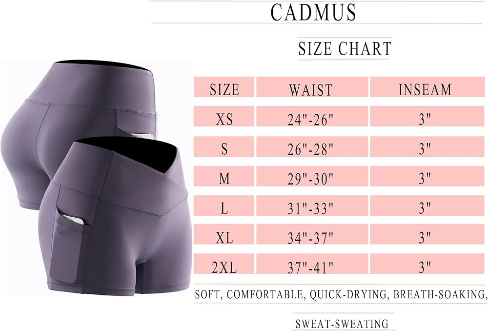 CADMUS 3 Pack Women's V-Waist Yoga Shorts Spandex Compression Biker Shorts Deep Side Pockets