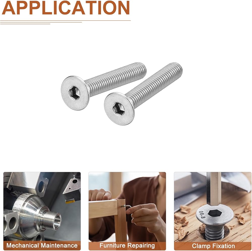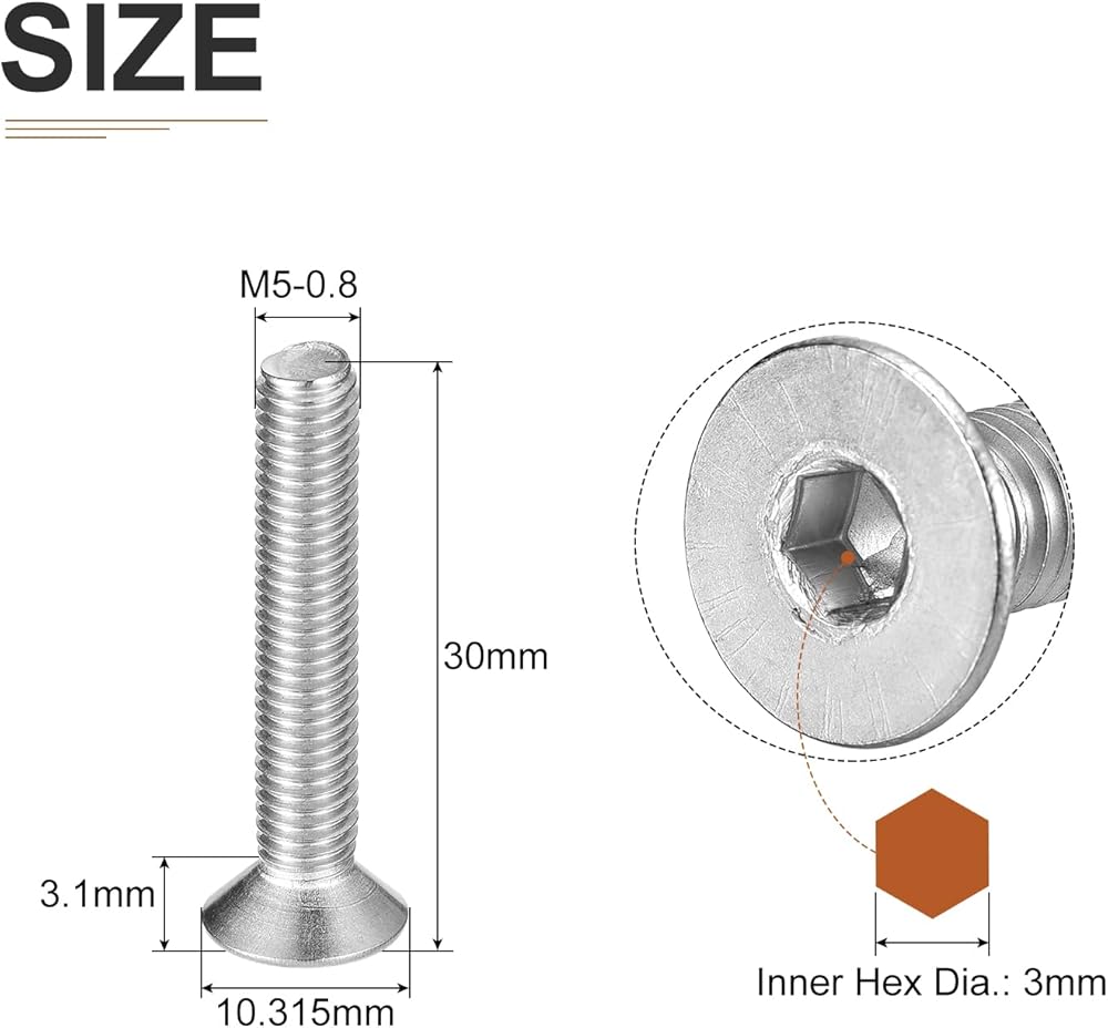 [Socket Head Screws]: The package comes with 10pcs of Hex Socket Flat Head Screws. Model: M10-1.5 x 40mm; Screw Groove Type: Inner Hex; Hex Dia.: 6mm;