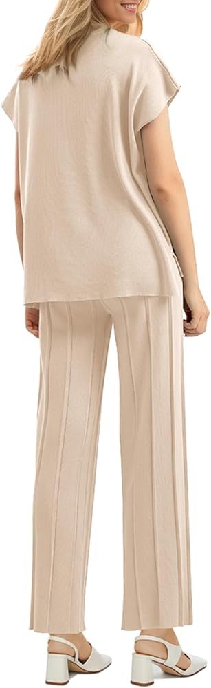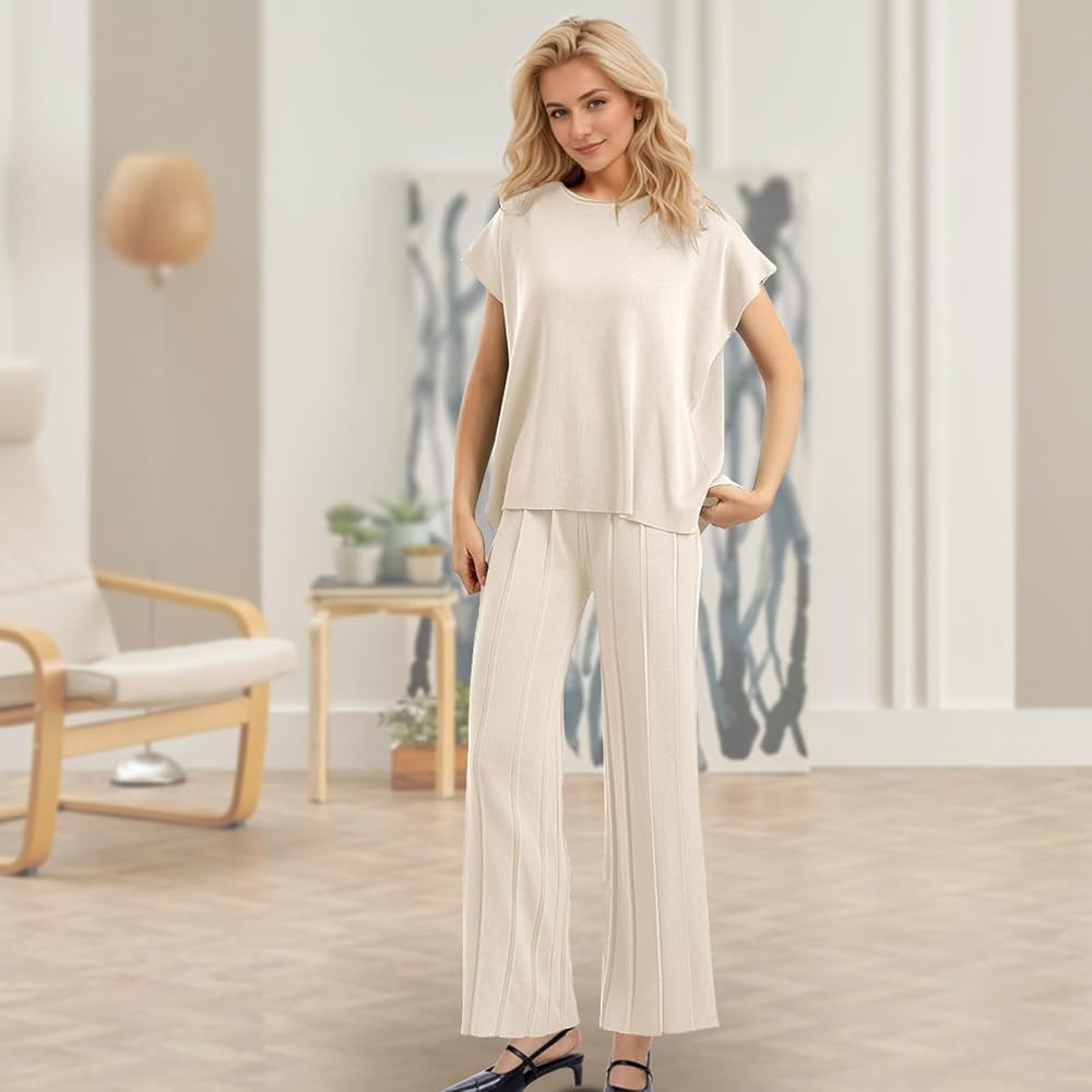☂️بنطلون عالي الخصر وواسع الساق: يكمل السترة زوج من السراويل عالية الخصر ومتماسكة ومضلعة وواسعة الساق توفر طرازًا أنيقًا وغير رسمي، ومناسبة لمختلف المناسبات.