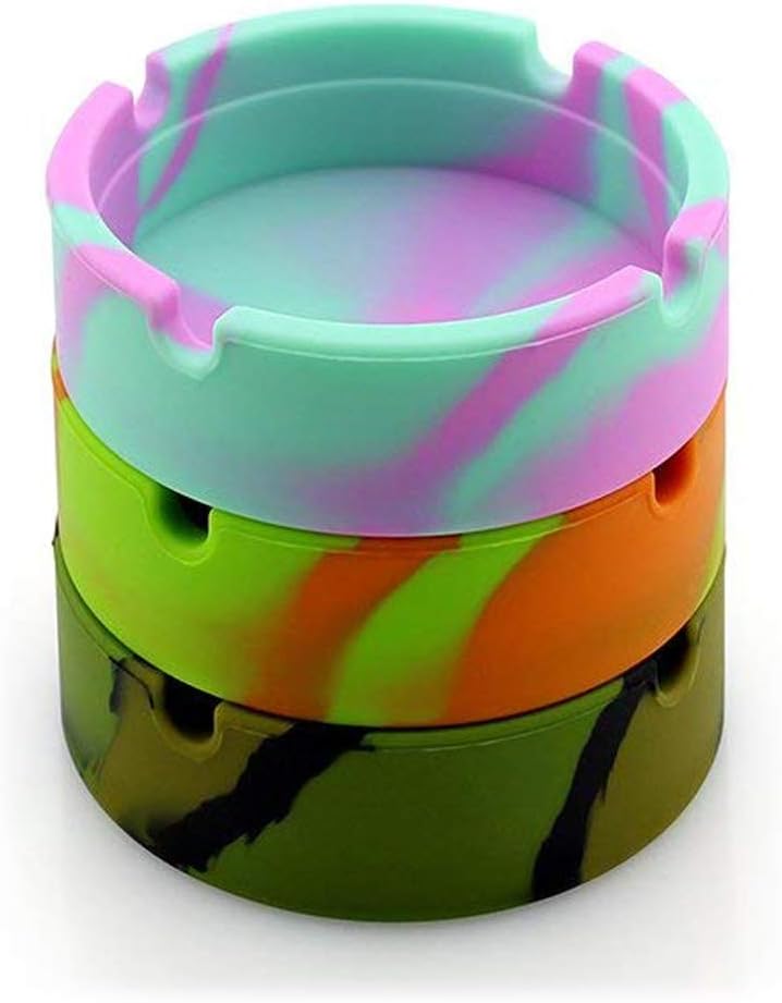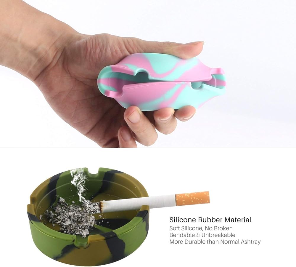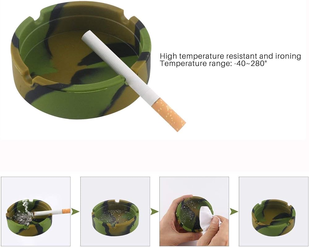 【HIGH TEMPERATURE HEAT RESISTANT】Silicone Ashtray Eco-Friendly Rubber Round Design Ashtray, you can directly put a cigarette out, will keeps the smell down, not like the other plastic ashtray bubbles up and turns white and black