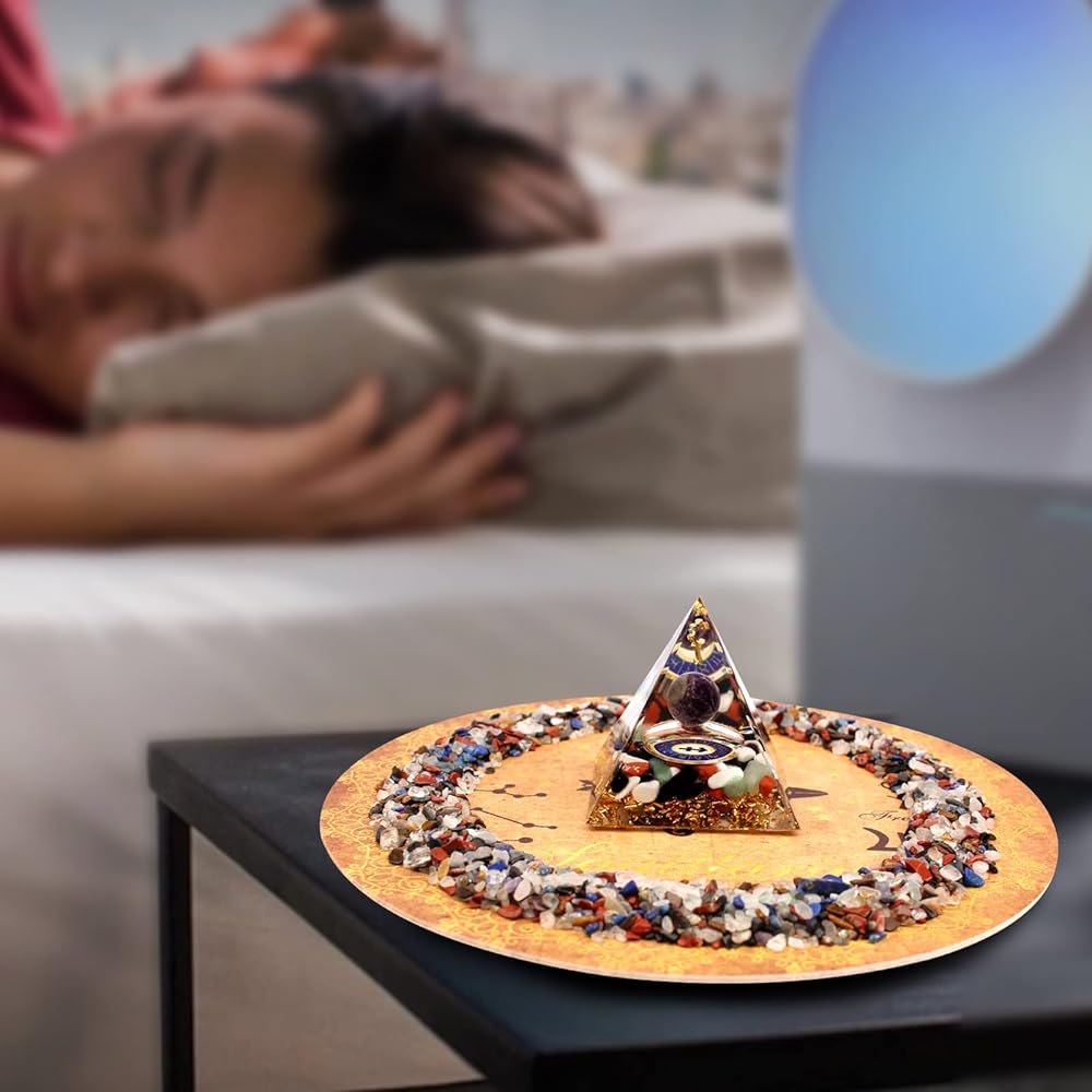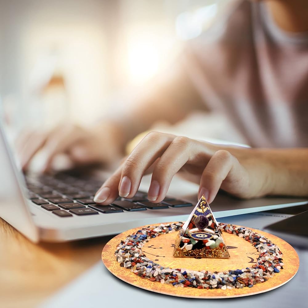 💎ANCIENT MYSTERIOUS PATTERN ALTAR Good materials with astrological patterns and ancient symbols, make a retro and exquisite Orgonite pyramid energy altar (7in), which can absorb more constellation energy. Placing Orgonite pyramids, lucky stones in the energy altar can gather constellation energy for the Healing Crystal Energy Set and it is also a very beautiful decoration.