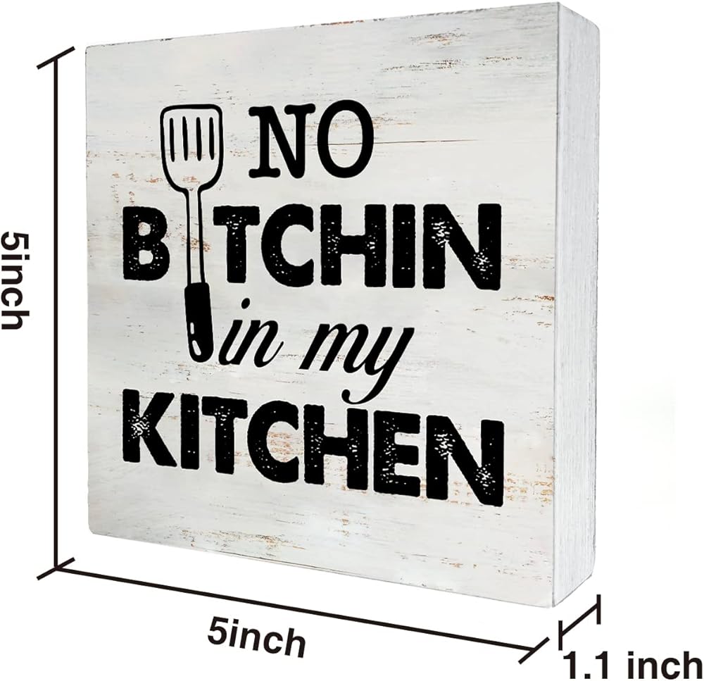Rustic in My Kitchen Wood Box Sign Funny Kitchen Wooden Box Sign Farmhouse Home Desk Shelf Decor (5 X 5 Inch)
