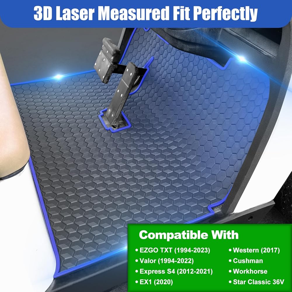 【PERFECT FITTING】:Golf Cart Floor Mat Compatible with EZGO TXT or S4 ,Only Fits EZGO TXT (1996 1997 1998 1999 2000 2001 2002 2003 2004 2005 2006 2007 2008 2009 2010 2011 2012 2013 2014 2015 2016 2017 2018 2019 2020 2021 Now), EX1 (2020), Valor, Cushman Workhorse & Express S4 (2012-2020) ,Remember to Double Check Your Cart Models Before Purchase.