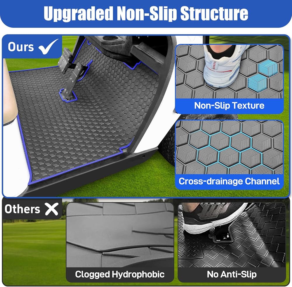 【CUSTOM DESIGN】:Fit Your Golf Cart Like a Glove and Easy to install. Soft Natural Rubber Easy to Remove and Clean,Just Use a Water Gun and You Can Rinse off All Stains Easily.