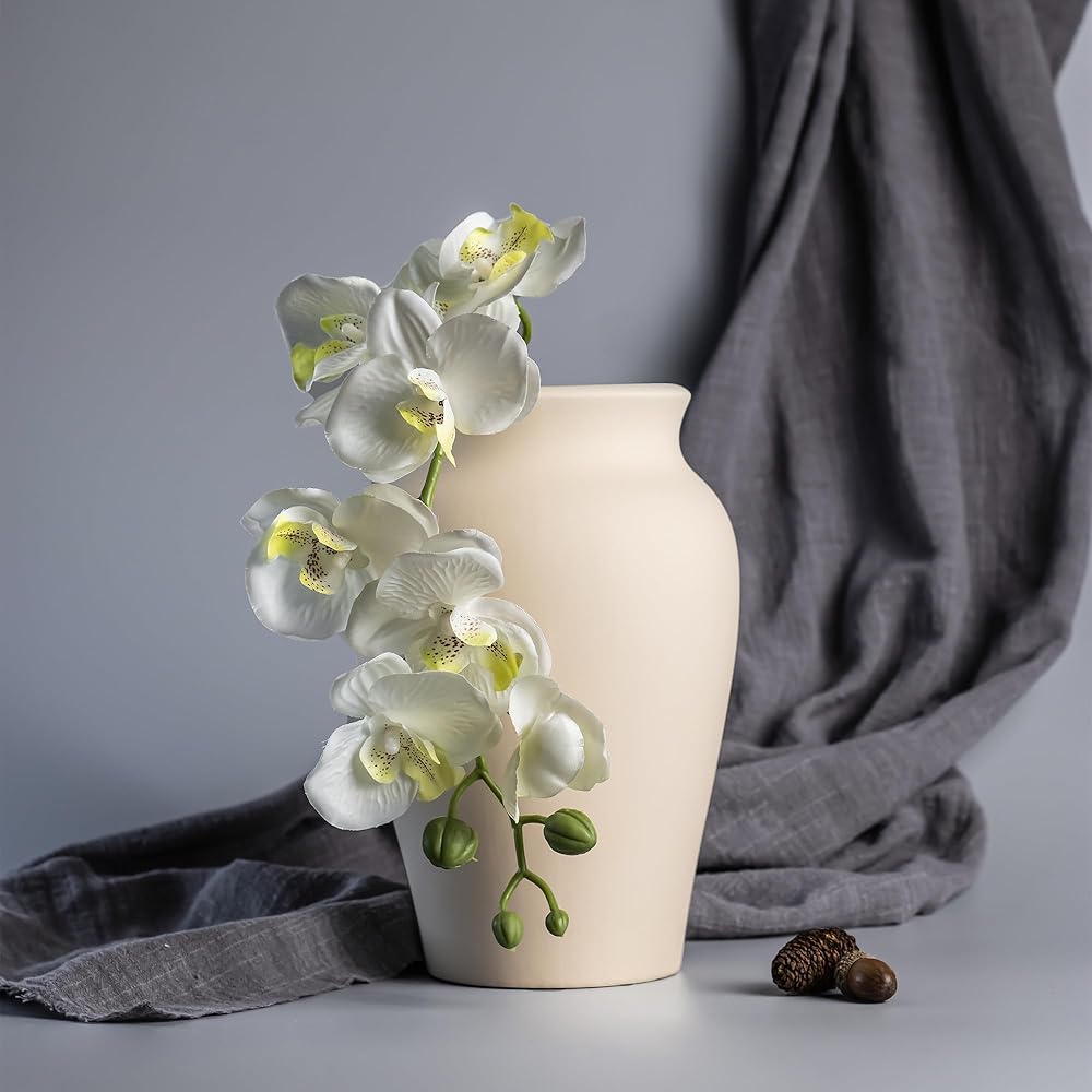 Beige Ceramic Vase Home Decor, 9 Inch Ceramic Wide Mouth Pottery Vase for Farmhouse, Vintage Terracotta Rustic Decor for Living Room, Entryway, Floor, Mantel Decoration