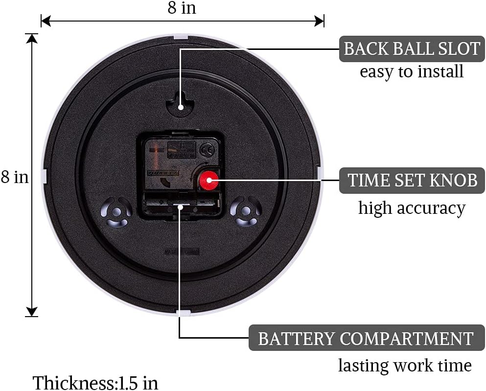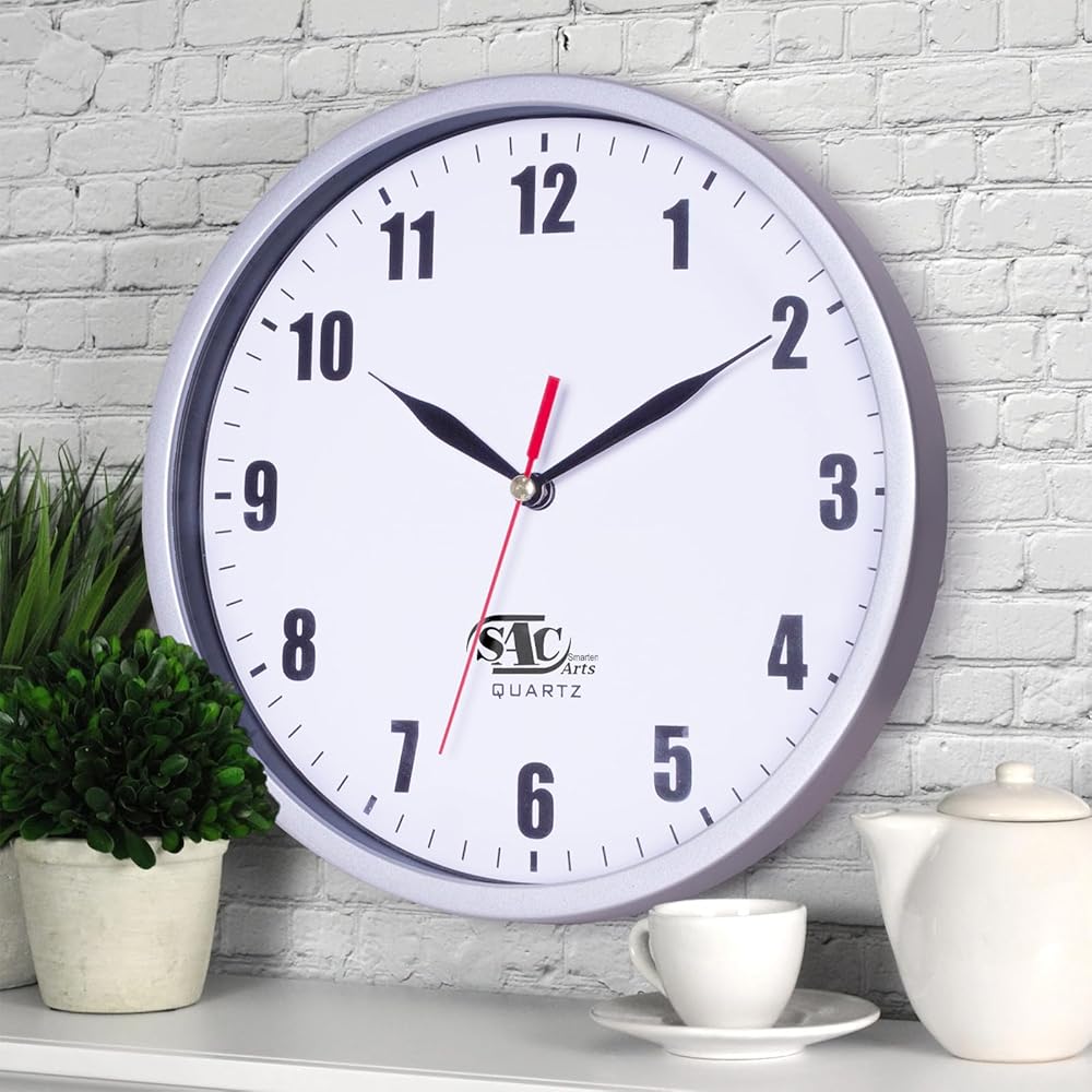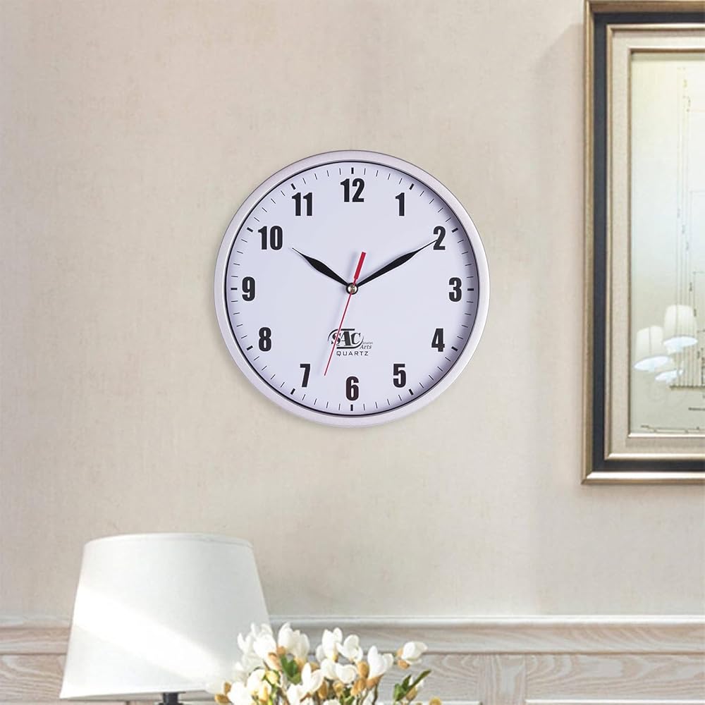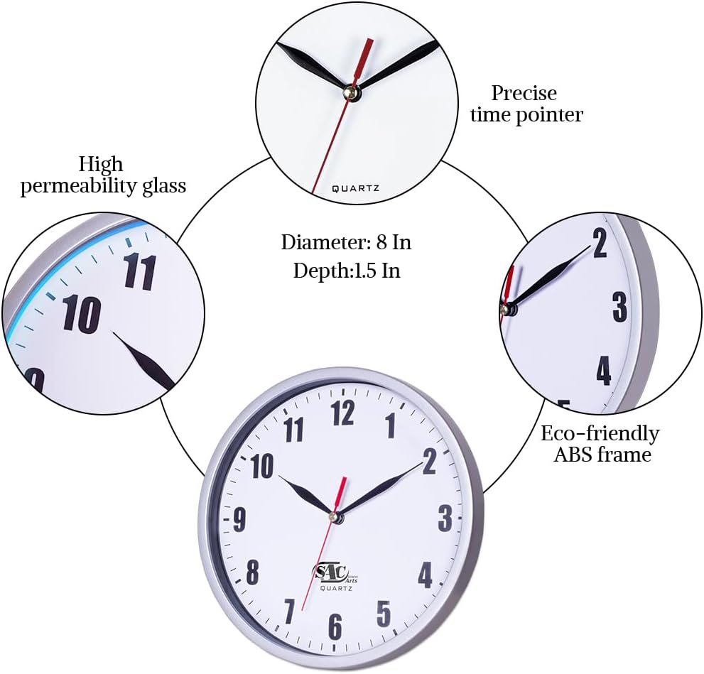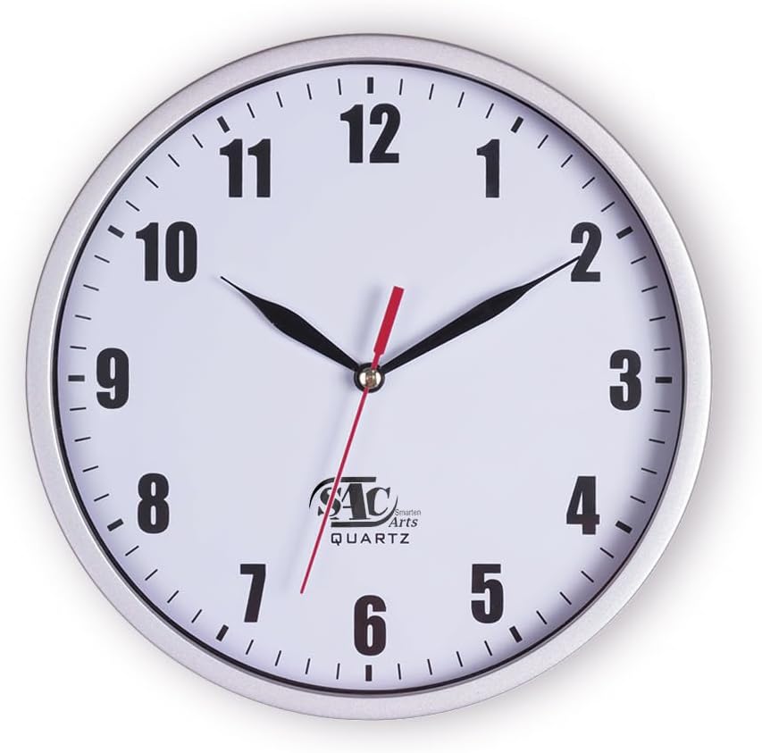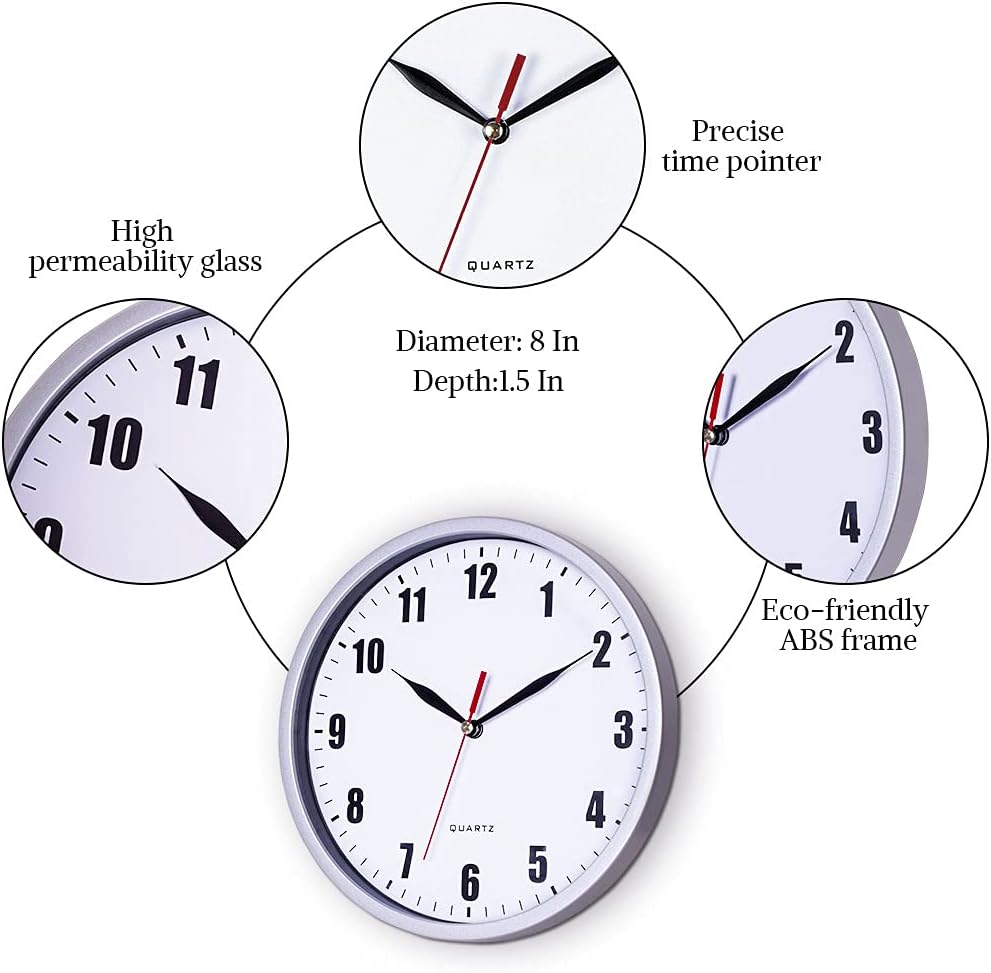 Smarten Arts 8 inches wall clock battery operated is a simple design clock suitable for any room decoration. Plastic frame have 3 color(white, black, sliver) for your choice. High-quality Quartz Sweep Movement guarantees accurate time and absolutely silent environment.
