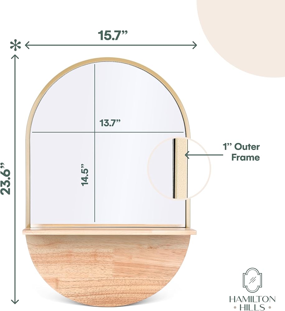 VANITY MIRROR WITH SHELF: Perfect Dimensions of 23.6" x 15.7" inches make this large wall mirror a practical vanity mirror with shelf. It offers a wide view, combining practicality with style in your home decor.